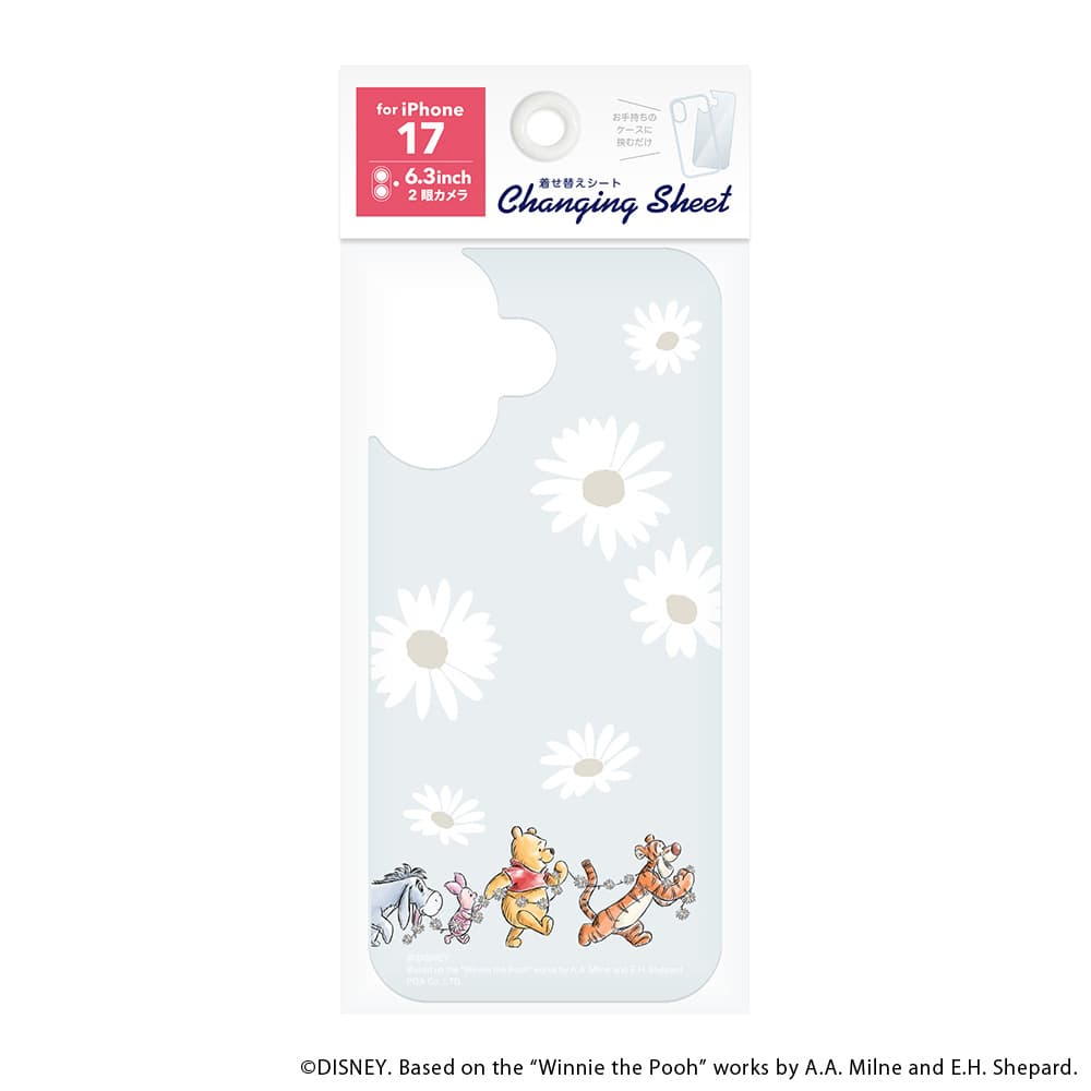 「PG-DSH25A04POO」は、背面が透明のケースに挟んでアレンジが楽しめるディズニーキャラクターデザインのiPhone 17用 着せ替えシートです。 iPhone本体の色を活かす透明タイプ。 高透明なPET素材のシートは、丸まったり・折れ曲がったりしない適度な厚さ。 シートサイズはiPhone本体よりも少し小さめ設計で、ケースの中でズレにくい。