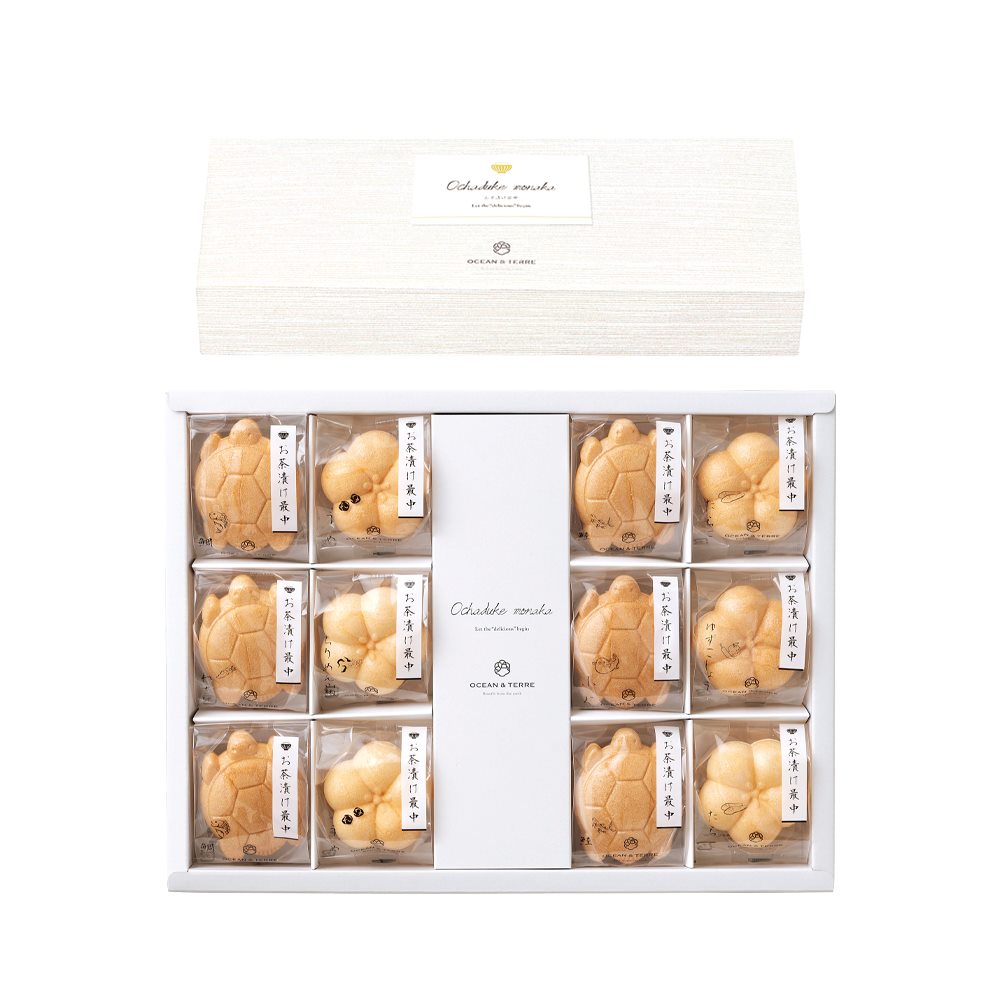 可愛らしい見た目からは想像もできない本格派。想像を超える新しい食感と深い味わいを、お楽しみください。最中(鯛茶漬け)8.3g×2、最中(梅茶漬け)8.1g×2、最中(鮭茶漬け)9.3g×2、最中(たらこ茶漬け)8.1g×2、最中(わさび茶漬け)8.3g×1、最中(ちりめん山椒茶漬け)8.1g×1、最中(ふぐ茶漬け)8.3g×1、最中(ゆずこしょう茶漬け)8.1g×1※もち米 100%(国産)最中種