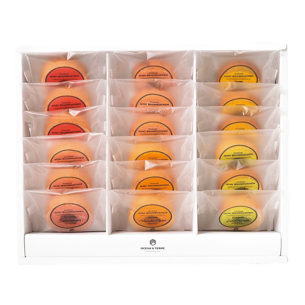 【栃木県産とちおとめ苺バーム】液卵(鶏卵(国産))、小麦粉、砂糖、水飴、ショートニング、マーガリン、コーンスターチ、いちごピューレ(いちご(とちおとめ(栃木県産))、砂糖)、加糖れん乳/ソルビトール、香料、乳化剤、膨張剤、着色料(ラック、カロテン)、酸化防止剤(V.E)、(一部に小麦・卵・乳成分・大豆を含む)【山形県産さくらんぼバーム】液卵(鶏卵(国産))、砂糖、小麦粉、水飴、ショートニング、マーガリン、コーンスターチ、さくらんぼ果汁(さくらんぼ(山形県産))、加糖れん乳/ソルビトール、香料、乳化剤、膨張剤、着色料(ラック、紅麹、クチナシ、紅花黄、カロテン)、トレハロース、酸味料、酸化防止剤(V.C、V.E)、増粘多糖類、(一部に小麦・卵・乳成分・大豆を含む)【山梨県産白桃バーム】液卵(鶏卵(国産))、小麦粉、砂糖、水飴、ショートニング、マーガリン、コーンスターチ、濃縮もも果汁(白桃(山梨県産))、加糖れん乳/ソルビトール、香料、乳化剤、膨張剤、着色料(ラック、カロテン)、酸味料、酸化防止剤(V.E)、(一部に小麦・卵・乳成分・大豆・ももを含む)【北海道産赤肉メロンバーム】液卵(鶏卵(国産))、小麦粉、砂糖、水飴、ショートニング、マーガリン、コーンスターチ、メロンピューレ加工品(メロンピューレ(赤肉メロン(北海道産))、果糖ぶどう糖液糖)、加糖れん乳/ソルビトール、乳化剤、膨張剤、着色料(紅麹、クチナシ、カロテン)、香料、酸味料、酸化防止剤(V.C、V.E)、(一部に小麦・卵・乳成分・大豆を含む)【沖縄県産マンゴーバーム】液卵(鶏卵(国産))、小麦粉、砂糖、水飴、ショートニング、マーガリン、コーンスターチ、マンゴーピューレ(マンゴー(沖縄県産))、加糖れん乳/ソルビトール、乳化剤、膨張剤、香料、着色料(カロテン)、酸化防止剤(V.E)、(一部に小麦・卵・乳成分・大豆を含む)【山形県産ラ・フランスバーム】液卵(鶏卵(国産))、小麦粉、砂糖、水飴、ショートニング、マーガリン、コーンスターチ、洋なしピューレ(洋なし(山形県産)、砂糖)、加糖れん乳/ソルビトール、香料、乳化剤、膨張剤、酸化防止剤(V.C、V.E)、着色料(カロテン)、(一部に小麦・卵・乳成分・大豆を含む)