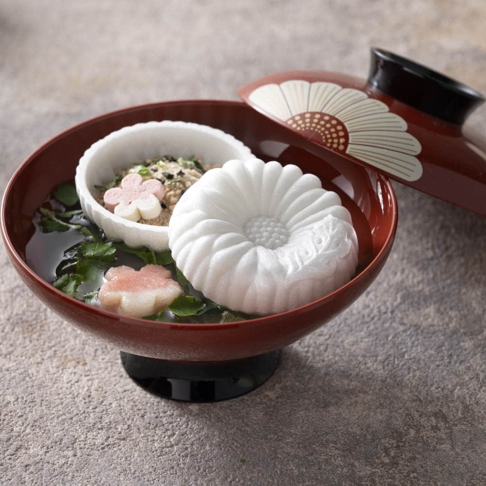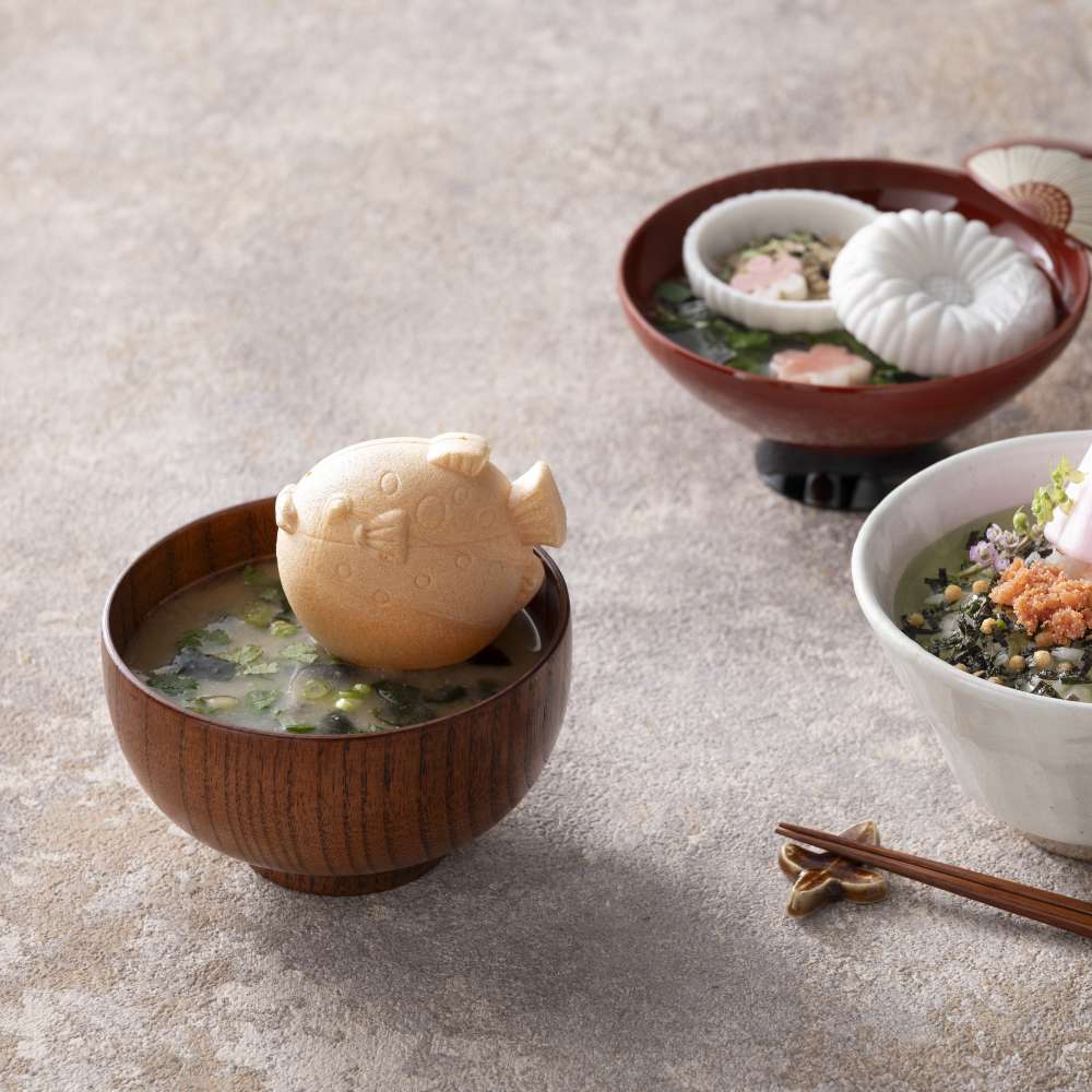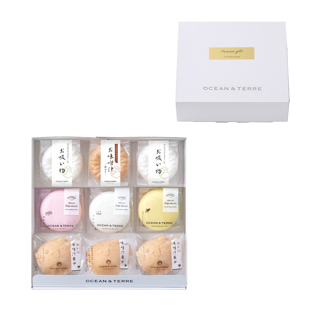 見た目だけでなく食感も楽しめる最中の詰め合わせ。最中は国産101%の最中種から作られており、だしや野菜スープにも国内素材を使用。 お吸い物最中(白菊)7.3g×2、味噌汁最中(茶菊)10.5g×1、北海道産かぼちゃス-プ最中20.7g×1、北海道産玉ねぎス-プ最中11.2g×1、北海道産スイートコーンス-プ最中20.7g×1、最中(だし味噌汁の素 合わせ)11.7g×2、最中(だし味噌汁の素 赤)11.7g×1※もち米 100%(国産)最中種