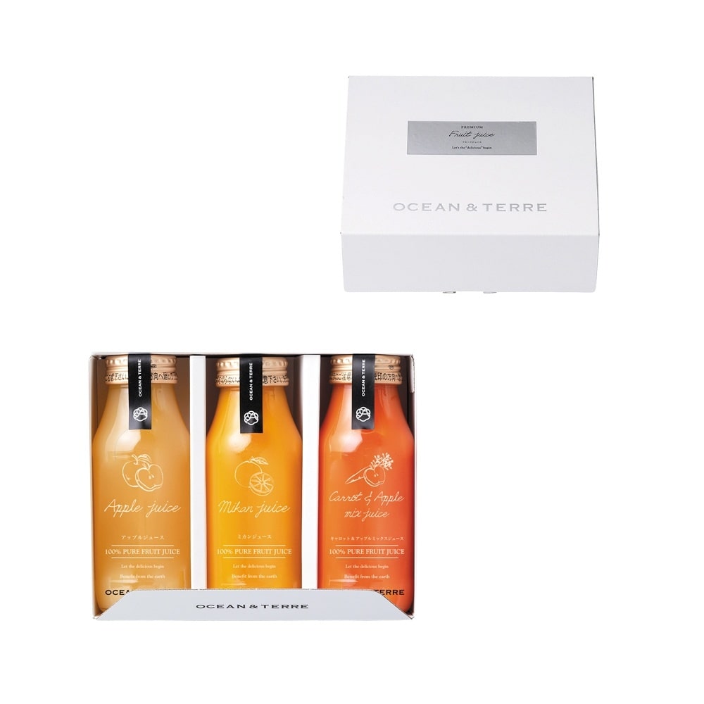 アップルジュース180ml×1、ミカンジュース180ml×1、キャロット&アップルミックスジュース180ml×1、キャラメリゼバーム プレーン×2、キャラメリゼバーム ストロベリー×3 ココロにもカラダにも優しい本格100%フルーツジュース。その濃厚な味わいは至福の時間を届けてくれます。 ふんわり、しっとりとしたバームクーヘンの表面に、キャラメルソースと砂糖をまぶして焼き上げたバームクーヘンです。甘くて香ばしい"キャラメリゼバーム"をお楽しみください。