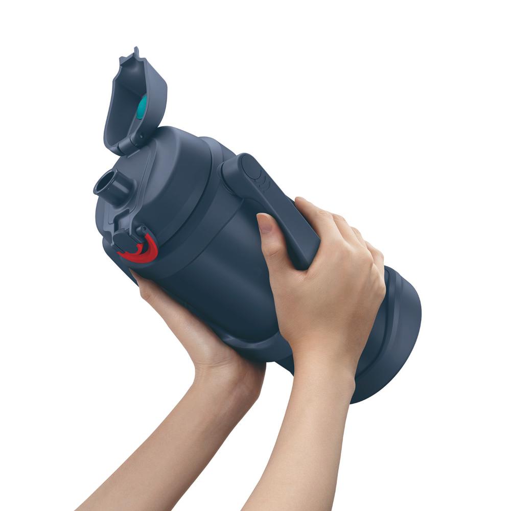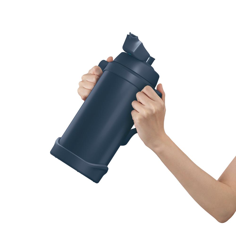 大容量帯スポーツジャグFJQのカラーリニューアル! 真夏のスポーツやアウトドアに最適な大容量 しっかり持って飲めるラク持ちハンドル 洗いやすく、大きな氷が入るワイドな口径 魔法びん構造で冷たさキープ キャップユニット食洗機対応