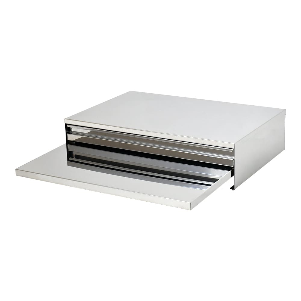 必要な時だけ引き出して使える便利な日本製のキッチンスライドテーブルです。 引き出し収納付きでラップやカトラリーなどちょっとしたキッチン用品を収納することができます。 設置方法は家電の下に置くだけ。組み立て不要の完成品なので届いてすぐその便利さを実感できます。 材質は、サビに強く、汚れてもお手入れ簡単なステンレス製です。 余計な飾りのないシンプルデザインなので、違和感なくキッチンに馴染みます。 調理途中のボウルやおたまなどの一時置き場、ごはんの盛り付け台など、様々な使い方で調理を手助けします。 スライド棚下の空間にはオーブントレーや料理本などを収納することもできます。 底面は滑り止めシール、引き出しにはストッパーがついているため、設置面への傷や抜け落ちを心配することなく安心して使うことができます。