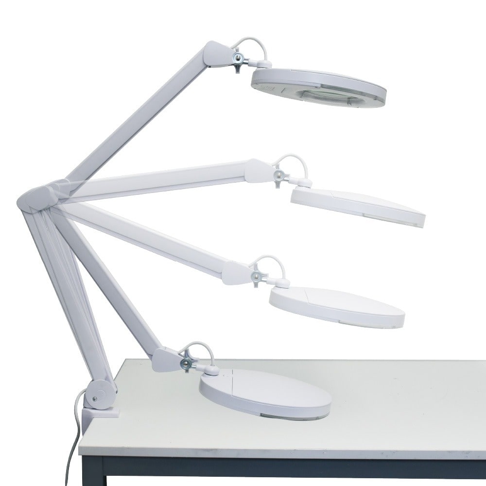 45個LEDライト付きルーペ。無段階調整可能でクランプ式 細かい作業をする時に使える、ライト付きのクランプ式ルーペです。 45個の高輝度LEDライトで、手元を明るく照らします。 アーム部は無段階調整可能でスムーズに高さ調整可能。 クランプ式でどこにでも取り付けることができます。 光束は650lm、照度は2400luxでとても強力。 集中して作業することができます。