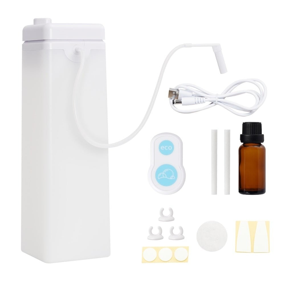本体:ABS PC、専用瓶(アロマ):ガラス、リモコン:ABS、シリコンホース:シリコン、ノズル:PC、ホース固定フック:PC