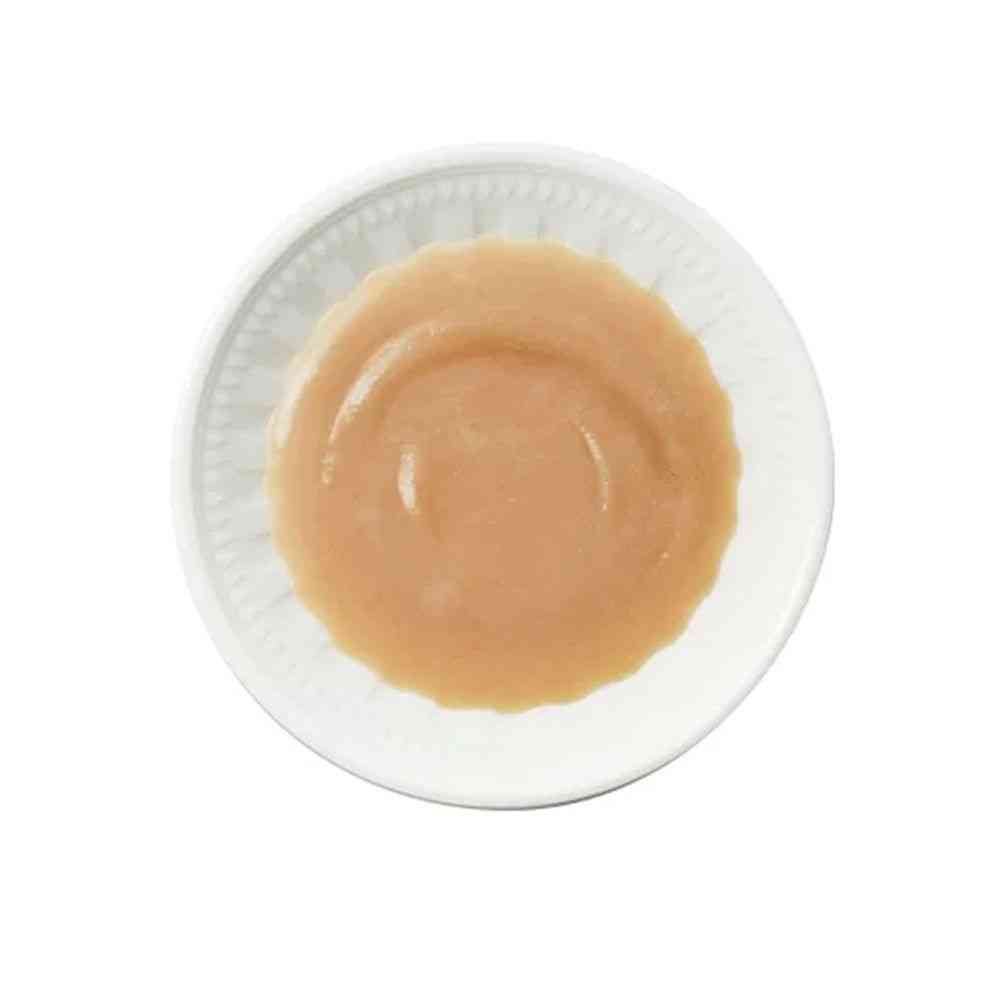魚介類(マグロ、フィッシュエキス)、でん粉、大豆油、乳酸菌(殺菌)、クエン酸K たんぱく質:3.9%以上、脂質:0.7%以上、粗繊維:0.1%以下、灰分:0.6%以下、水分:87.5%以下