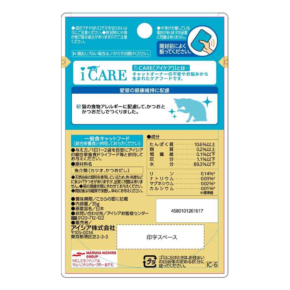 かつおの単一たんぱく源仕立て。 猫の食物アレルギーに配慮して、かつおとかつおだしでつくりました。 腎臓の健康維持に配慮し、リンとナトリウムを調整。 着色料・発色剤・香料・増粘安定剤不使用。 スープタイプ。