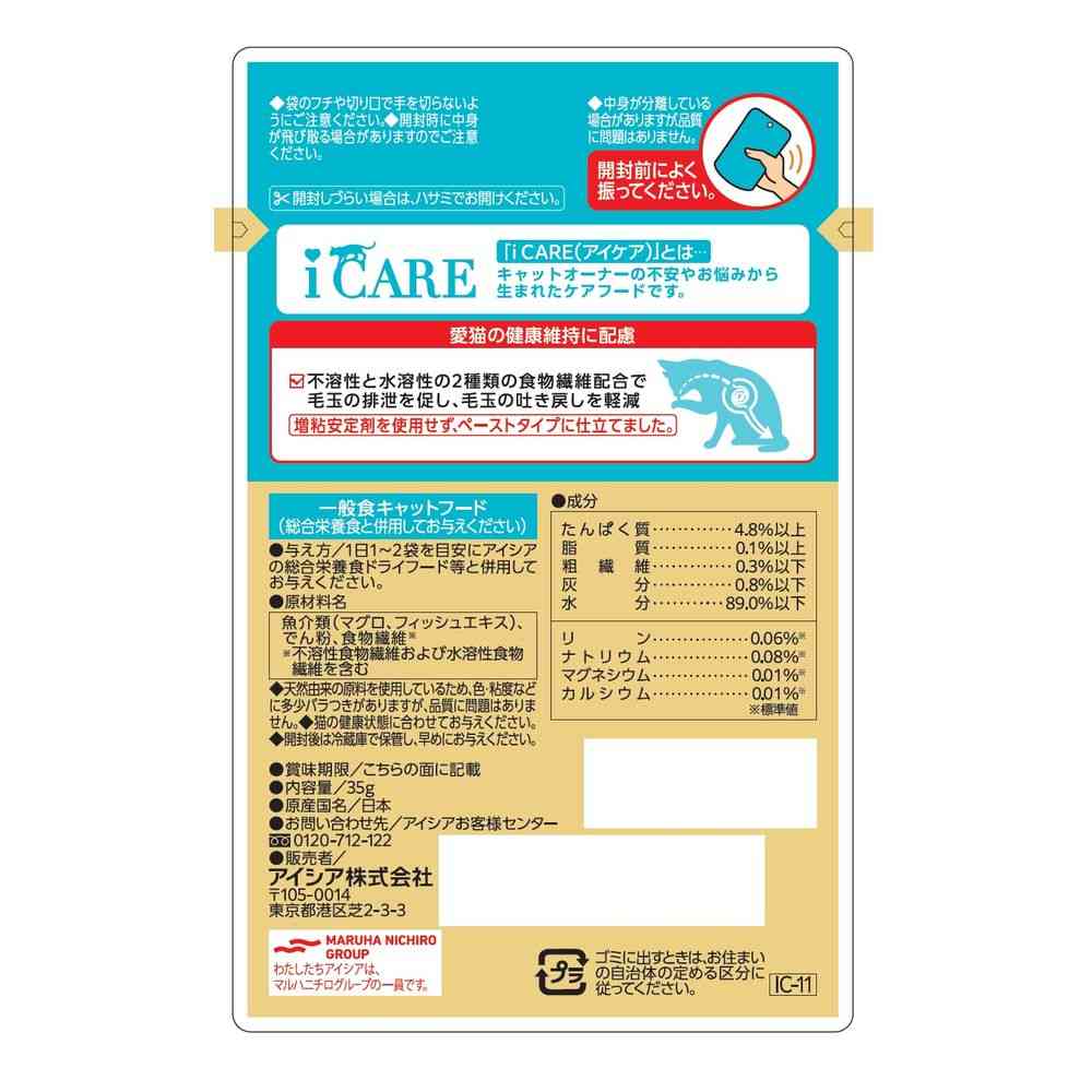 不溶性と水溶性の2種類の食物繊維配合で毛玉の排泄を促し、毛玉の吐き戻しを軽減。 腎臓の健康維持に配慮し、リンとナトリウムを調整。 着色料・発色剤・香料・増粘安定剤不使用。 ペーストタイプ。