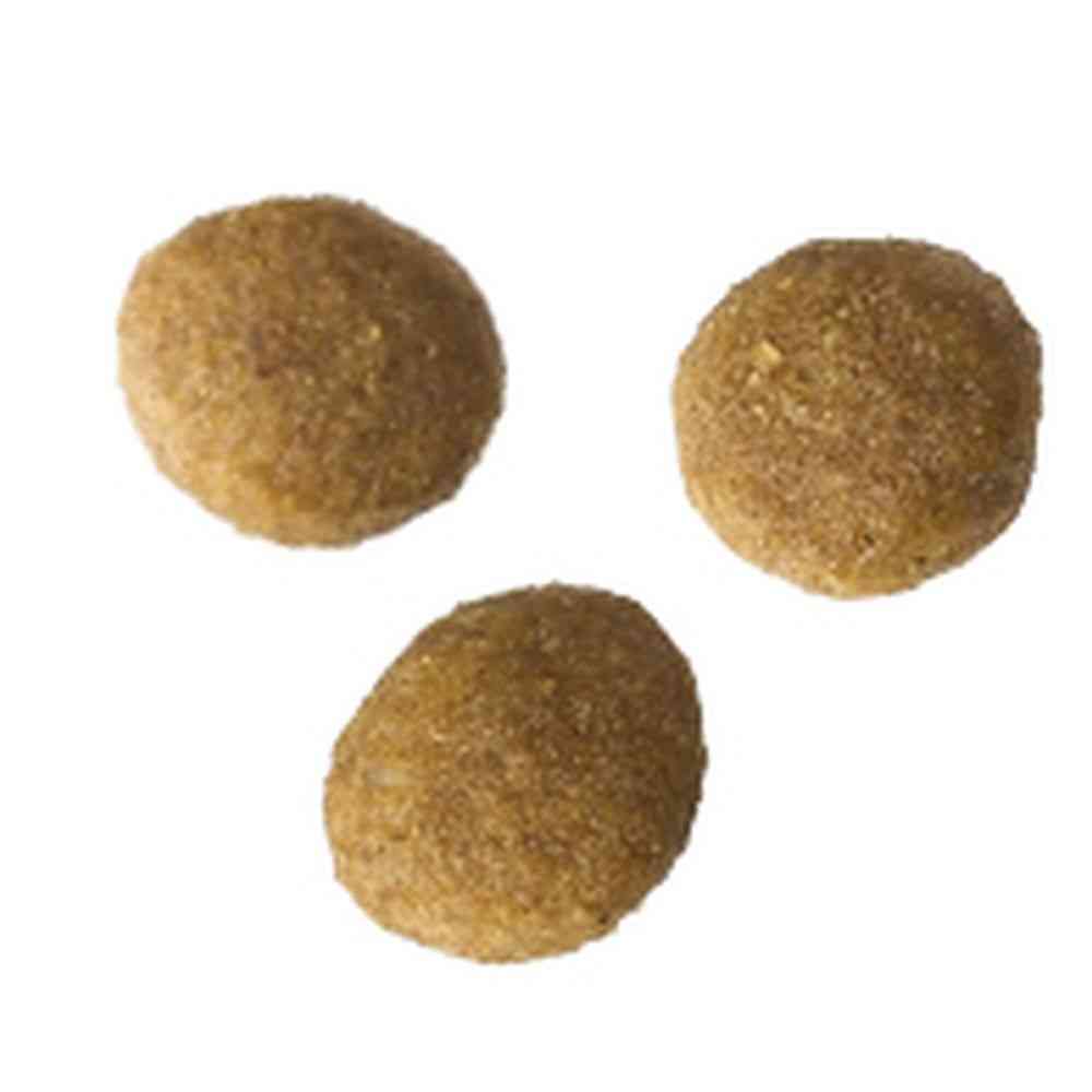 穀類(とうもろこし、コーングルテンミール、小麦粉)、肉類(チキンミール、チキンレバーパウダー)※1、魚介類(ホワイトフィッシュミール、フィッシュエキス)※1※2、動物性油脂、食物繊維(不溶性食物繊維、水溶性食物繊維)、糖類(ラクトスクロース、ガラクトオリゴ糖)、乳酸菌(殺菌)、ビフィズス菌(殺菌)、ミネラル類(Ca、P、K、Na、Cl、Fe、Cu、Mn、Zn、I、Co)、ビタミン類(A、D3、E、K3、B1、B2、B6、B12、ナイアシン、パントテン酸、葉酸、ビオチン、コリン、C)、アミノ酸類(メチオニン、タウリン)、酸化防止剤(ミックストコフェロール、ハーブ抽出物)※1 動物性たんぱく源 ※2 DHA、EPA源 たんぱく質:30.0%以上、脂質:12.0%以上、粗繊維:6.0%以下、灰分:9.0%以下、水分:10.0%以下