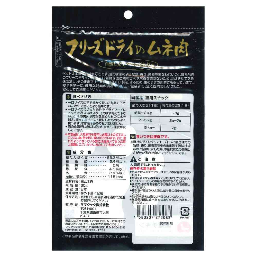 - > ママクック フリーズドライのムネ肉 猫用