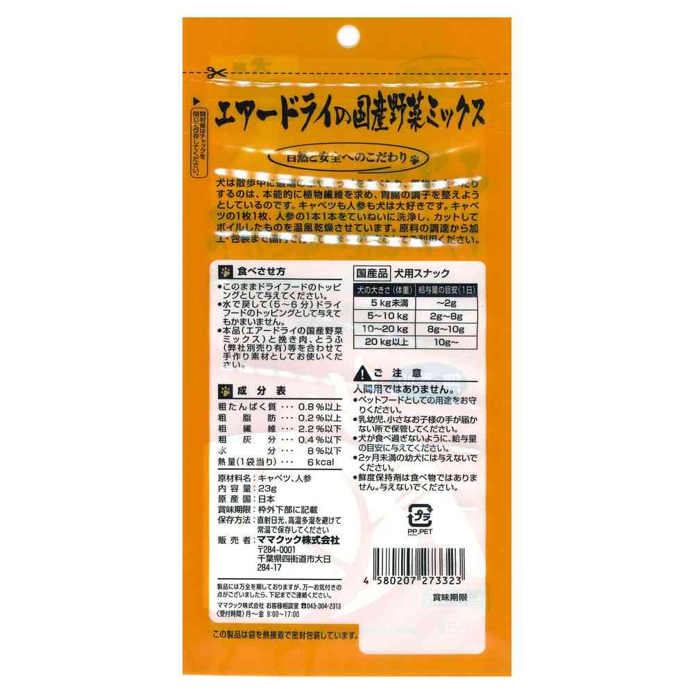 - > ママクック エアードライの国産野菜ミックス 犬用