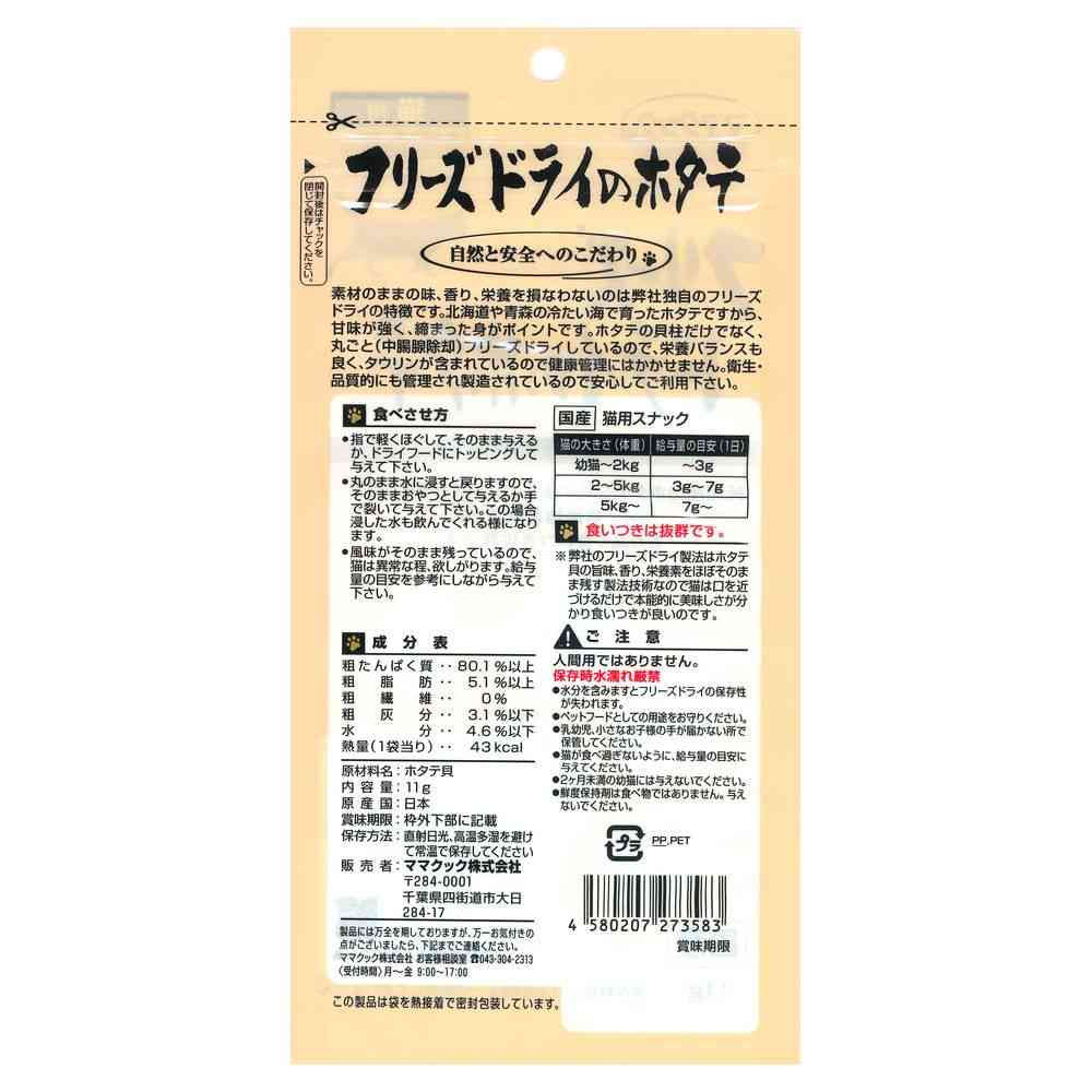厳選した国産ホタテを使用。 おやつにも、いつものごはんのトッピングにも使えます。 ウェットおやつが好きな子には、水分を含ませてあげる事も出来ます。