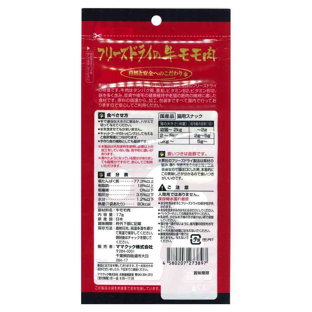 - > ママクック フリーズドライの牛モモ肉 猫用