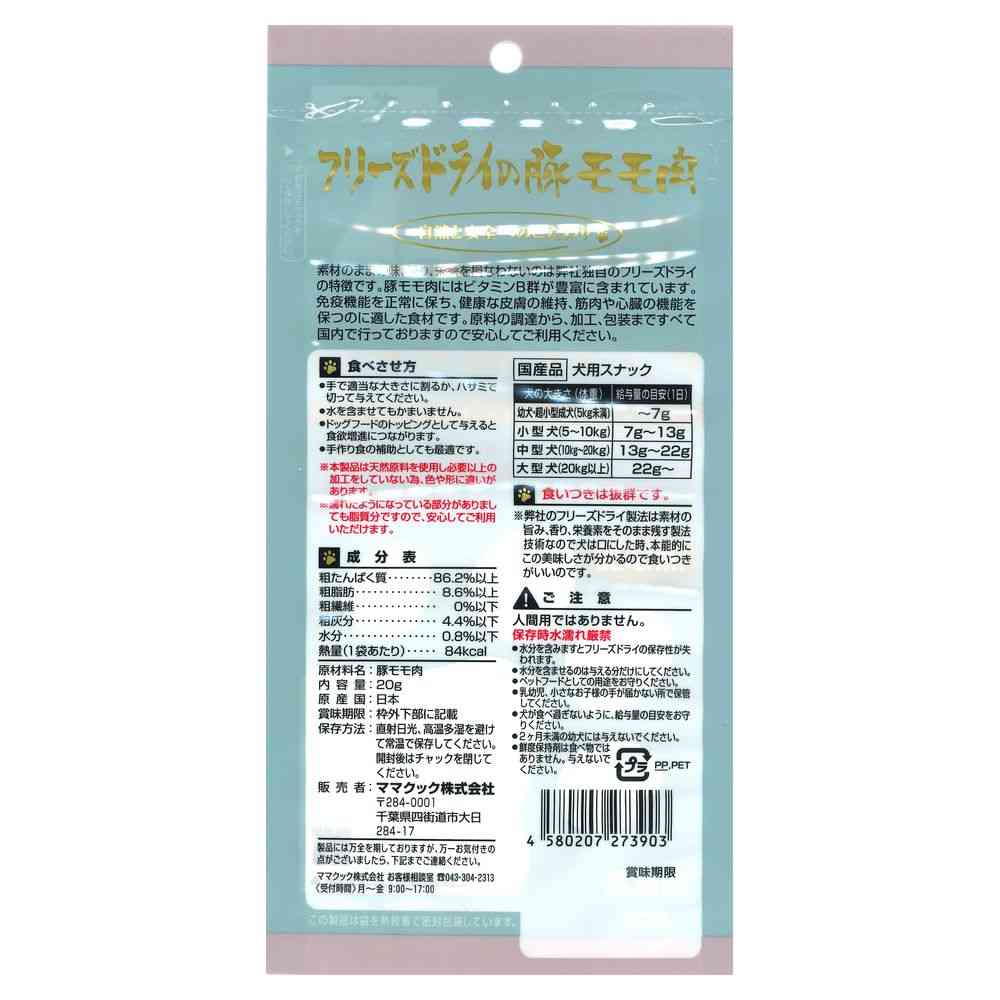 - > ママクック フリーズドライの豚モモ肉 犬用
