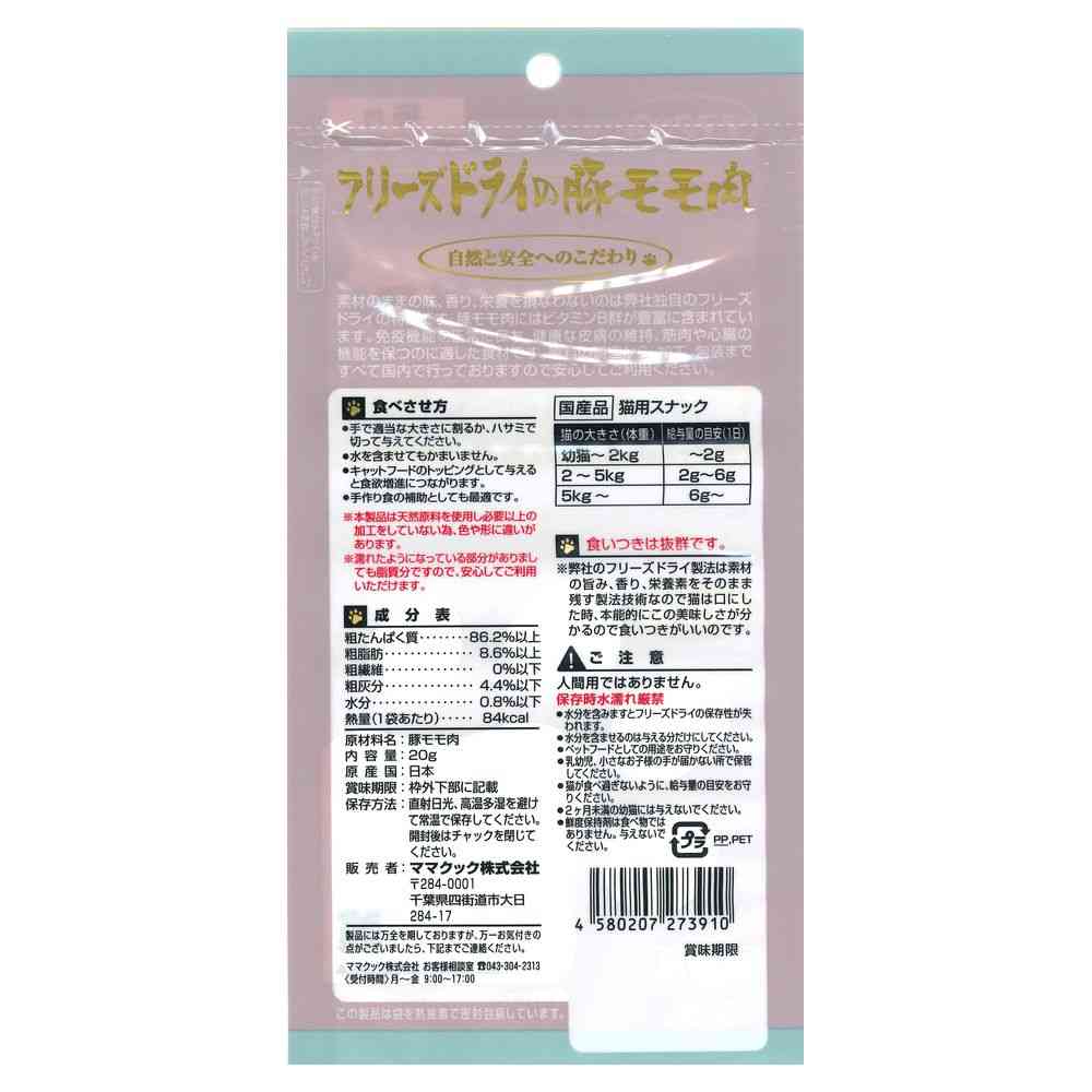 - > ママクック フリーズドライの豚モモ肉 猫用