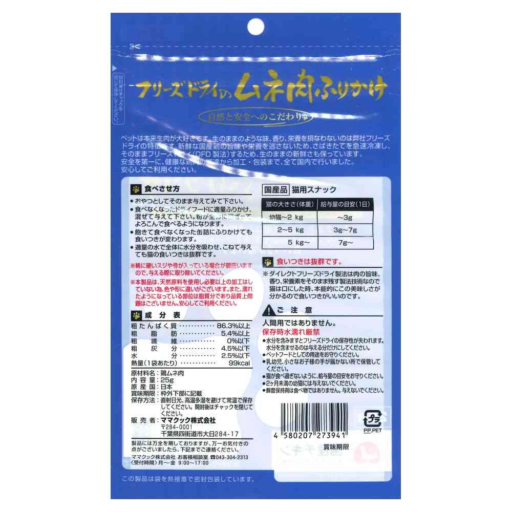 - > ママクック フリーズドライのムネ肉ふりかけ 猫用