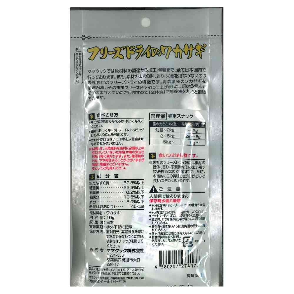 - > ママクック フリーズドライワカサギ 猫用