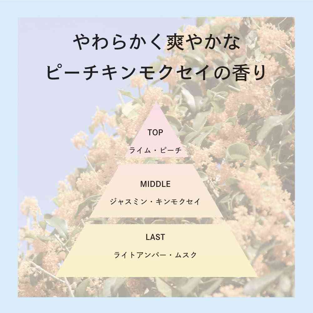 夜のケアから朝のスタイリングまで1本で完了するプロミルミルクシリーズ。 サロンクオリティのダメージケア効果はもちろん、心地良い使用感と穏やかな香りの洗い流さないヘアトリートメント。 上品な甘さとフルーティなピーチ&キンモクセイの香り。