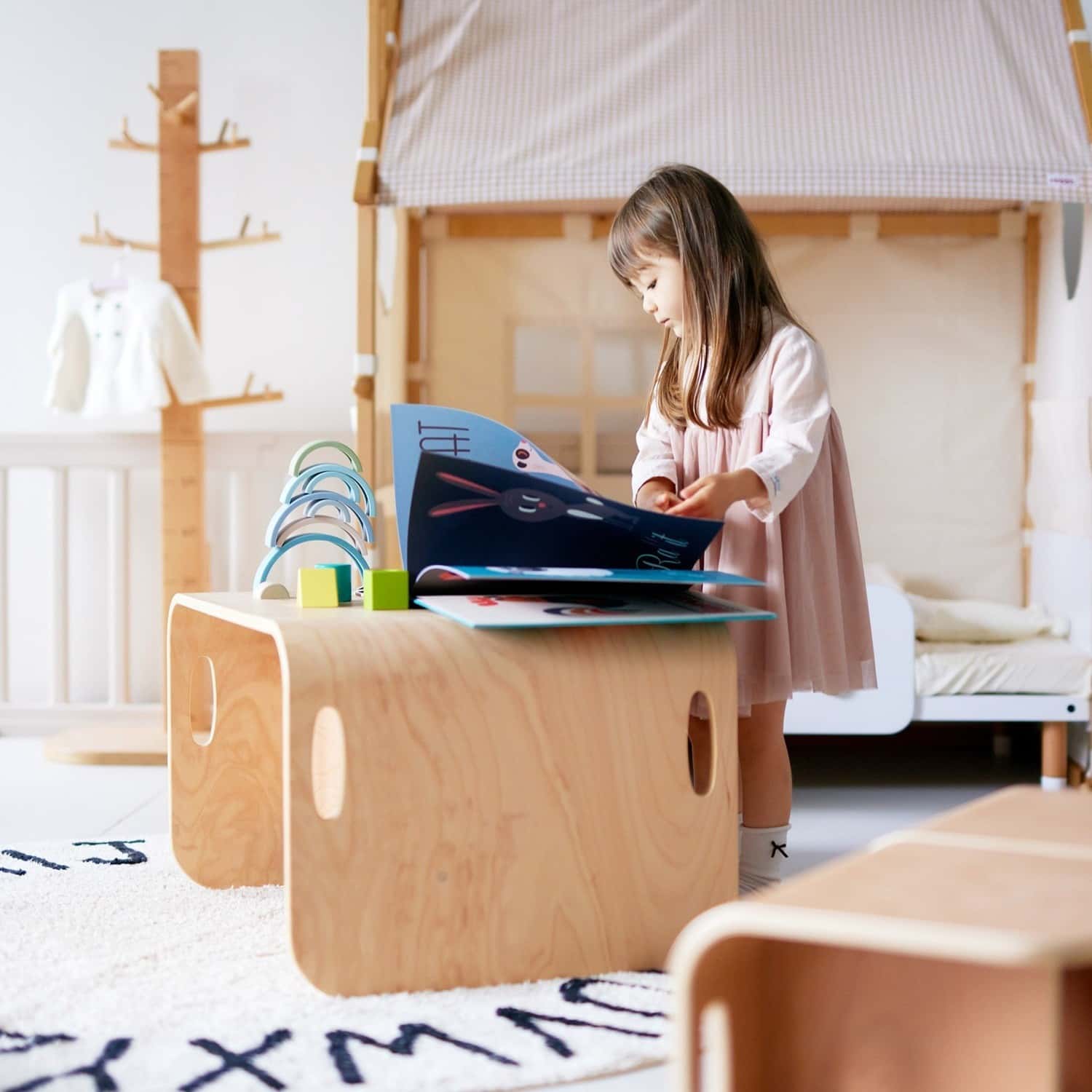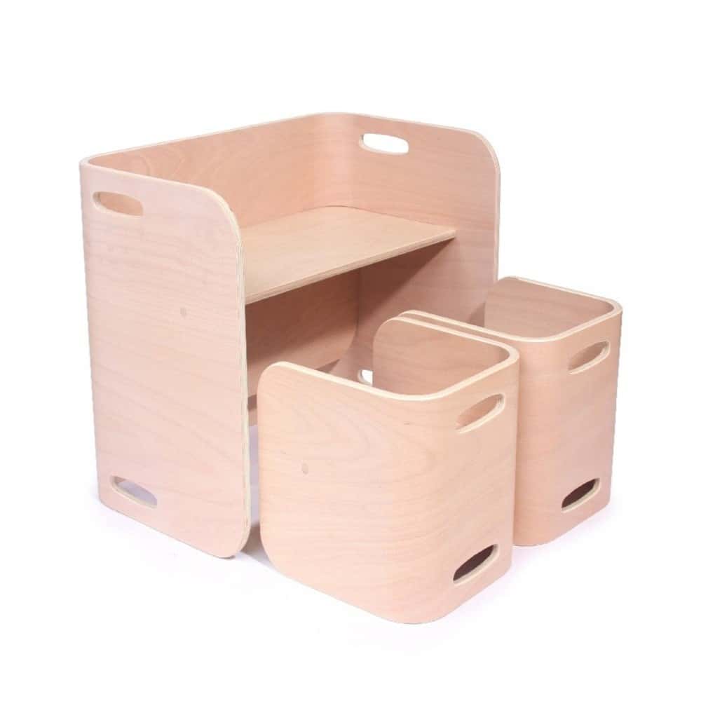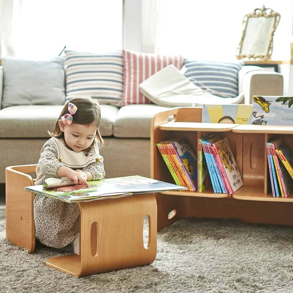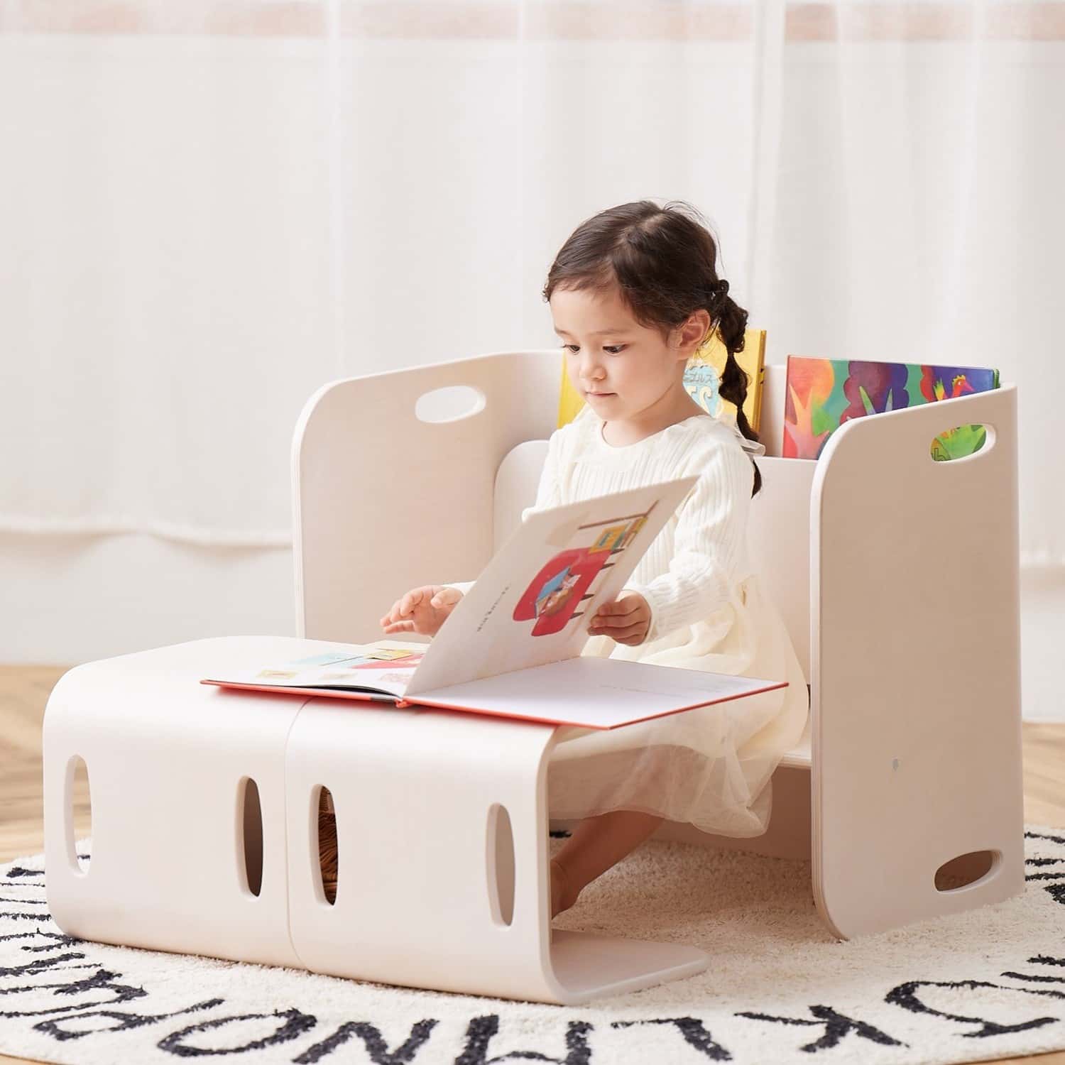 【転がす数だけ成長がある】 6ヶ月から使えるコロコロチェア&デスクは転がす事で、キッズデスク、テーブル、キッズベンチとして用途を変える事ができ、チェアとの組み合わせ次第でサイドテーブル、本棚やランドセルラックなど収納にも使える製品です。 お子様の成長にともなうご家族のライフスタイルの変化に寄り添って長く使用できます。 コロコロチェアは転がす事で座面の高さを4段階に変える事ができ、大人のスツールとしても使えます。 デスクとチェアにはしっかりとした囲いがあり、小さなお子様でも集中して机に向かい、落ち着いて椅子に座れる工夫を施しています。 幼児期から机に向かう習慣を身につけることで、自分から行動する力や自立心を育むきっかけになるといわれています。長く使える点だけでなく、集中できる環境づくりといった幼児期学習の観点からも多くお客様に選ばれています。 お子様だけでなく大人のインテリアとしても遜色のないようシンプルなデザイン仕上げています。もちろん小さなお子様が使用する事が大前提なので、機能面・デザイン面だけでなく安全性にもこだわっています。 2012年にはキッズデザイン賞受賞。