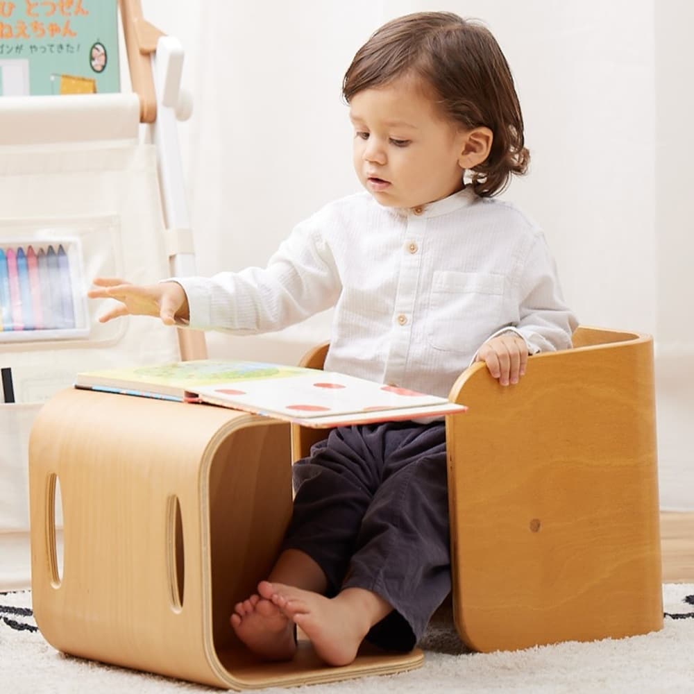【転がす数だけ成長がある】 転がすことによって高さを4段階に変えることが可能です。耐荷重30kg(スツール面は80kg) 別売のコロコロデスクとの組み合わせで学習机やリビングボード、本棚などさまざまな用途でご使用いただけます。 転がすことにより使用する用途が変わるのでお子様から大人まで長くご愛用いただくことができます。 コロコロチェアはネジや工具を使わず、転がすだけで用途を変えることができる優れもの。アールの効いたデザインと、お部屋に馴染むカラーで日常を 彩ります。チェアを2つ使ってミニデスクとチェアのセットとしても使用可能です。 お子様が使用するにあたって最も心配なことは商品の安全性。コロコロチェアは角に丸みを持たせ、お子様がケガをしないように配慮しました。 角が丸く、背もたれには持ち手がついているため、小さなお子様でも簡単に転がして、様々な使い方を楽しむことができます。 座面の高さを2段階で変えることができ、6ヶ月のお子様からお座りいただけるチェアとなっております。 2012年キッズデザイン賞受賞