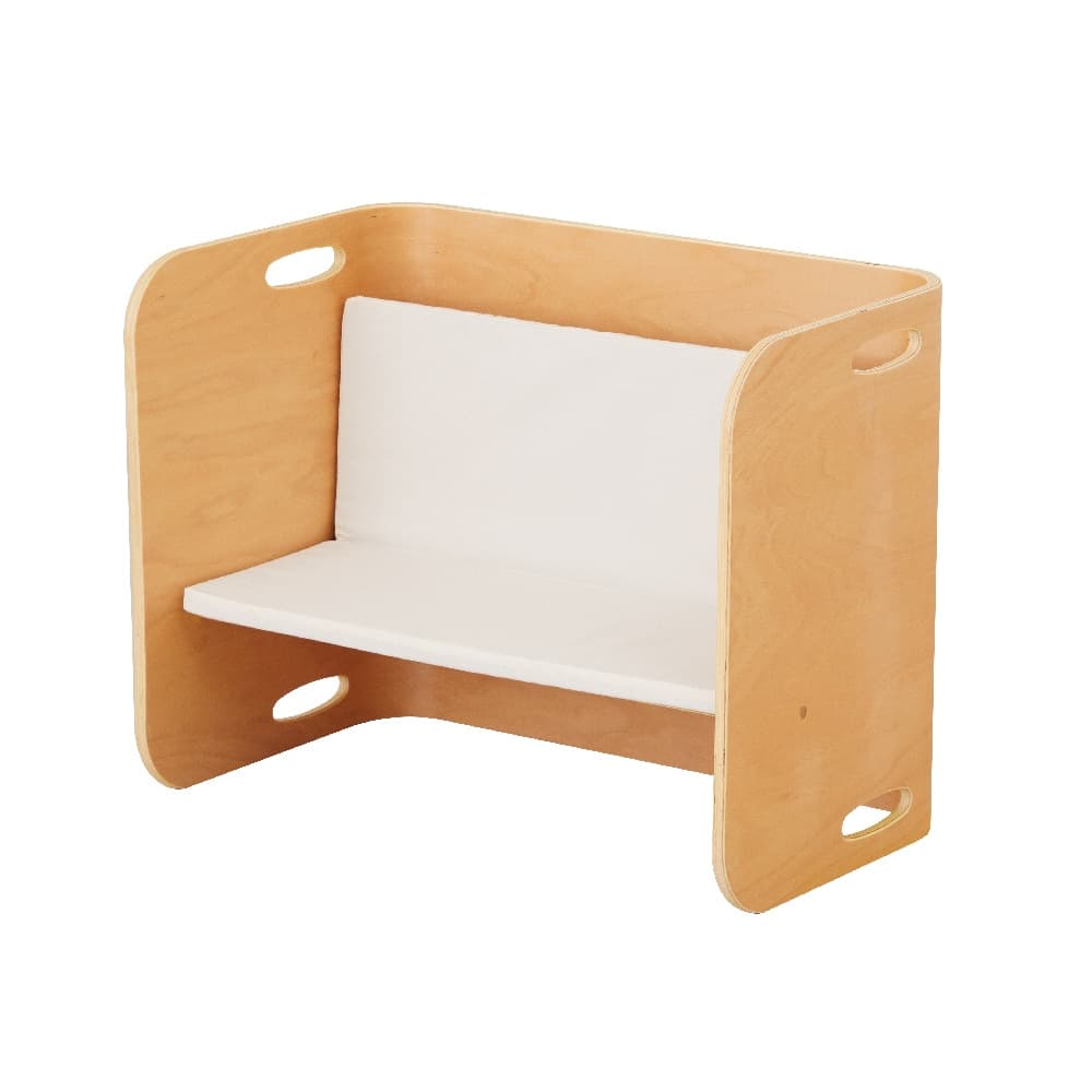 背中まで優しくフォロー コロコロデスクのベンチ面に取付できる専用クッションです。向きを変えてもズレないよう2か所に紐がついております。そのためしっかりと固定することができます。 クッションの厚みは2cmあり、お尻だけでなく背中もしっかりとサポートしてくれるため、ソファのように快適に座ることができます。気づかぬうちに服のボタンや食べこぼしなどで座面に傷や汚れが付くことがあります。コロコロデスクにクッションを付けることで傷や汚れからコロコロデスクを保護することができます。