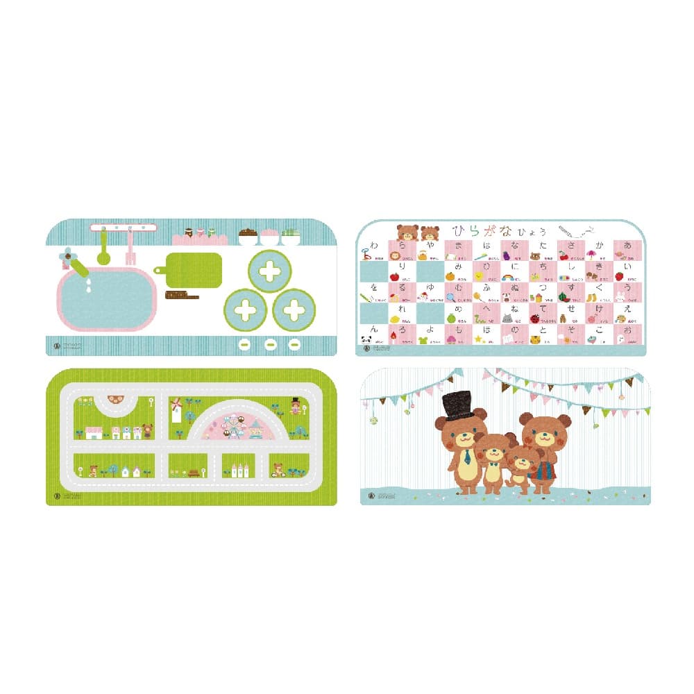 多機能デスクマット キズや汚れから守る グリーン購入法適合商品 デスク面の保護マットと表裏リバーシブルで使える可愛い下敷きが2枚付いたコロコロデスク専用のデスクマットです。 コロコロチェア&デスクをご購入頂いた多くのお客様からのご要望で専用のデスクマットが出来ました。 これまではどうしても小さなお子様が使うのでデスク面のキズやクレヨンなどの汚れを避ける事が出来ませんでしたが、専用のデスクマットを使用する事で未然にキズや汚れの防止に役立ちます。 マットの表面に施したシボ加工が光の反射を和らげるので、お子様の目にもやさしく、4パターンで使える下敷き(ホップルベアファミリー、ひらがなひょう、ホップルタウンマップ、キッチンセット)が付属するので、「遊び」や「学び」にも使えます。 もちろんシンプルにマットだけでの使用も出来ます。マットの両面にコピーインク転写防止加工を施しているので、お気に入りの絵や写真も挟んでおけます。 素材には焼却しても「塩素水素ガス」の発生が無い非塩ビ素材を採用し、環境にも配慮しています。