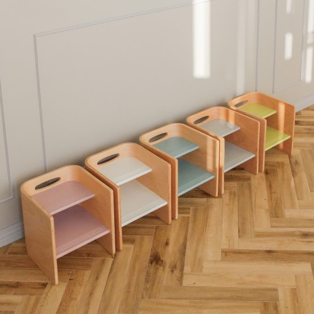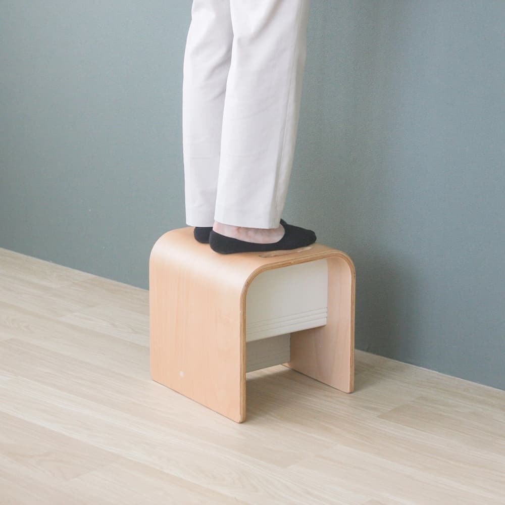 自分でできた!をひとつずつ増やしていくための手助けをする小さな相棒。 踏み台が必要ない時もチェアとしていつでも一緒。 これひとつで子ども用の椅子・大人用の椅子・踏み台の役割を持つため、家具は最小限に抑えたいご家庭にもピッタリ。 転がして向きを変えるだけでどの向きでも踏み台として使え、チェアとしてもご利用いただけます。 足を掛けた際に、滑らないように30mmごと計3本の溝を加工。また、控えめな角丸加工で転倒しにくい仕様に。耐荷重は60kg(最大100kg) 幼稚園~小学校低学年程のお子さまを持つ家庭で高確率で使われている踏み台は、あると便利な育児アイテム。手洗いや歯磨き・トイレトレーニング・キッチンでのお手伝いなどで活躍し、お子様の自立を促します。 落ち着いたデザインでどんなインテリアにも自然に馴染みます。