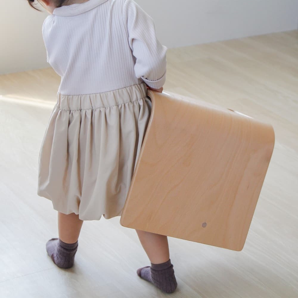 自分でできた!をひとつずつ増やしていくための手助けをする小さな相棒。 踏み台が必要ない時もチェアとしていつでも一緒。 これひとつで子ども用の椅子・大人用の椅子・踏み台の役割を持つため、家具は最小限に抑えたいご家庭にもピッタリ。 転がして向きを変えるだけでどの向きでも踏み台として使え、チェアとしてもご利用いただけます。 足を掛けた際に、滑らないように30mmごと計3本の溝を加工。また、控えめな角丸加工で転倒しにくい仕様に。耐荷重は60kg(最大100kg) 幼稚園~小学校低学年程のお子さまを持つ家庭で高確率で使われている踏み台は、あると便利な育児アイテム。手洗いや歯磨き・トイレトレーニング・キッチンでのお手伝いなどで活躍し、お子様の自立を促します。 落ち着いたデザインでどんなインテリアにも自然に馴染みます。