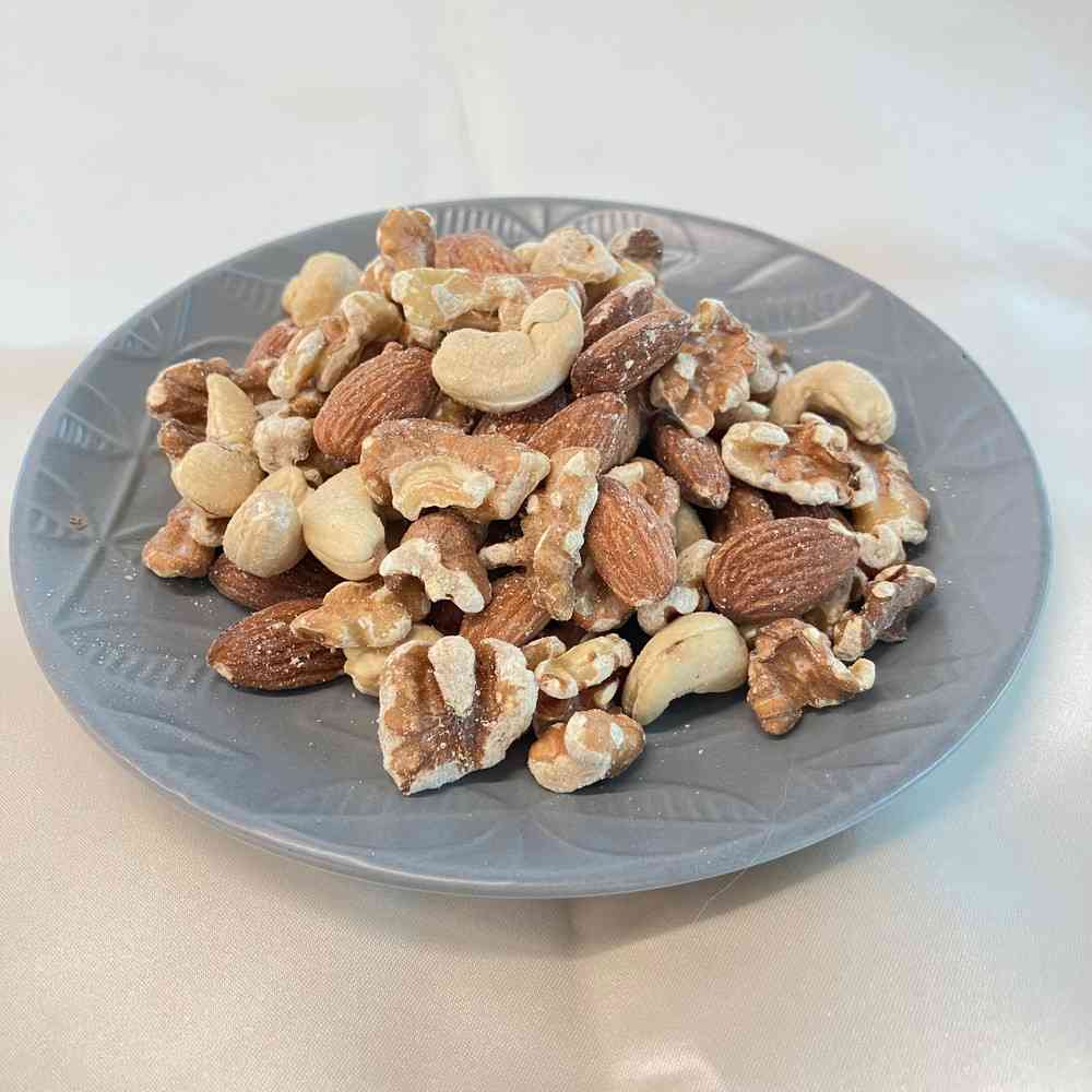 香ばしく焼き上げた素焼きミックスナッツ。 アーモンド、クルミ、カシューナッツをバランスよくブレンドし、無塩・無添加で素材本来の風味を楽しめる健康志向のナッツです。 おやつや間食、サラダやヨーグルト、料理のトッピングにも最適で、手軽に栄養補給ができます。 カリッとした食感とナッツ本来の豊かなコクが、毎日の食事やスナックタイムを満足感ある時間にします。 【特長】 ・無塩・無添加の素焼きミックスナッツ ・アーモンド、クルミ、カシューナッツのブレンド ・健康志向の方におすすめ ・おやつや間食、料理のトッピングに最適 ・カリッと香ばしい食感とナッツ本来の風味