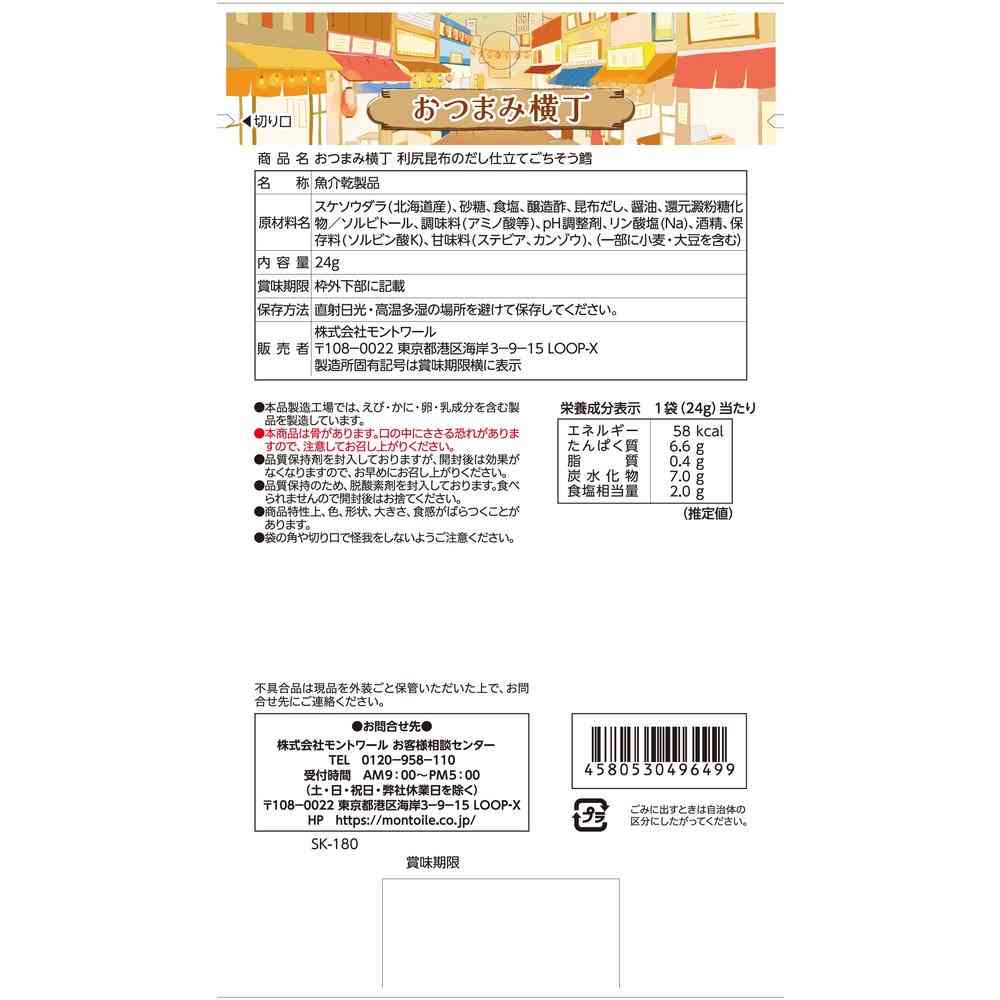 ![◆モントワール おつまみ横丁 利尻昆布のだし仕立てごちそう鱈 24g [5個セット]](/img/0170/goods/L/4580530496499.jpg)