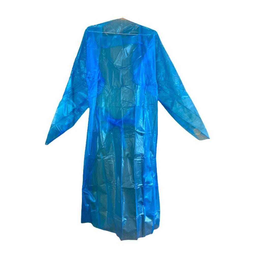 使い捨て用の未滅菌ポリエチレンガウンです。使い捨てのポリエチレンガウン。飛散する液体などからの感染リスクの軽減が図れます※使い捨て商品ですので、繰り返しの使用はお控えください。