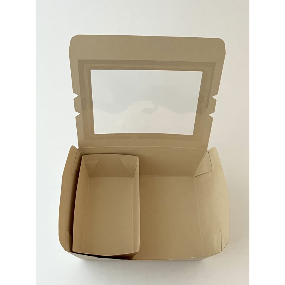 環境にやさしい竹素材の窓付きランチボックス環境にやさしい竹素材の使い捨てランチボックス。中身の見える窓付きタイプ