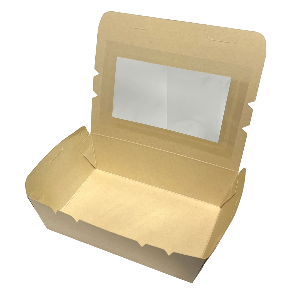 環境にやさしい竹素材の窓付きランチボックス環境にやさしい竹素材の使い捨てランチボックス。中身の見える窓付きタイプ