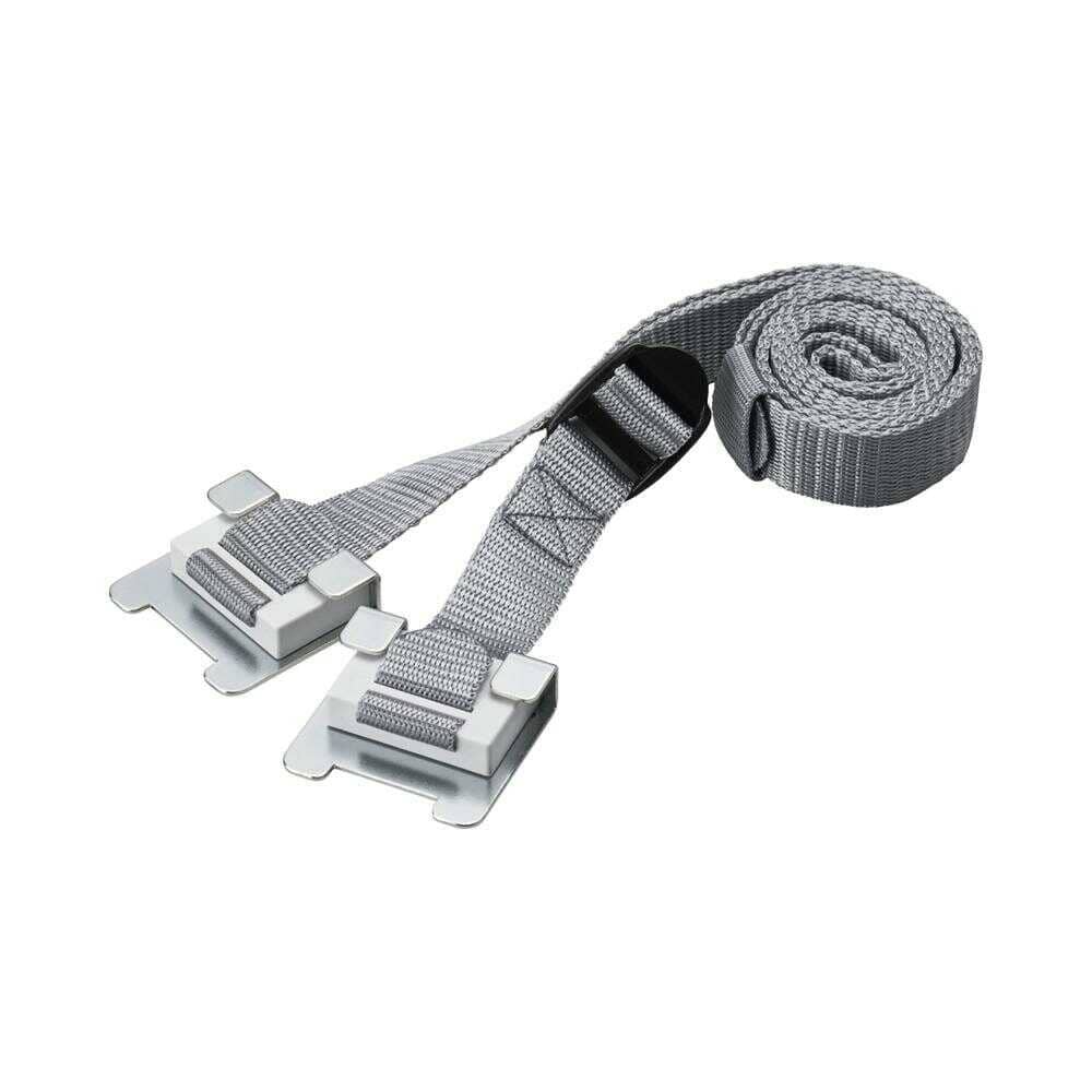 グラッと来る前に。収納物をしっかり固定! 取り付け可能幅:1,500~1,800mm 耐震度:震度6強相当 外寸:ロックホルダー:約52(W)×47.6(L)×16.2(D)mm、ベルト:幅25mm 【セット内容】:本体(ベルトフック付きベルト×1、接着パッド付きロックホルダー×2)、アルコールパッド×2、取扱説明書