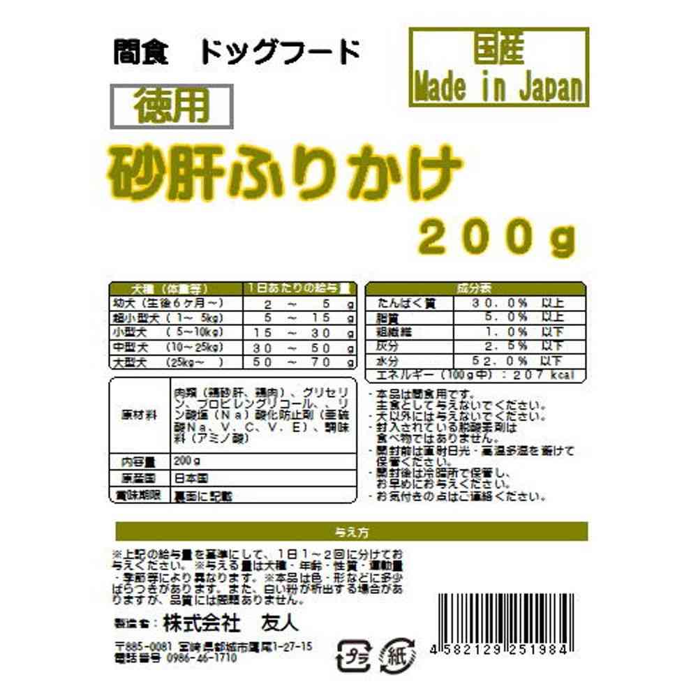 ドッグフードにふりかけても、そのままでもお与えできます。 高たんぱくで低脂肪、鉄分豊富な鶏砂肝を使用しております。
