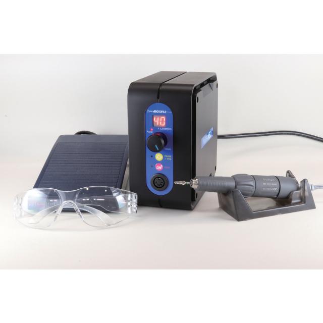 ●デジタル回転数表示機能を搭載し、便利なポーズ機能も標準装備です。●優れた防塵構造と回転精度で、ジュエリーメーキング、ウッドカービング、グラスリッツェンなどの精密作業はもちろん、超強力NDマグネット採用により各種金型研磨からバリ取りまでパワフルにこなします。●コレットチャックは便利なワンタッチ開閉方式を採用し、特殊なスパナ等を使用せず先端工具の着脱が可能です。●軽量ハンドピースが作業時間を快適にします。●無負荷回転数(min[[の-1乗]]):40000●外径(mm):26●全長(mm):151●軸径(mm):3●電源(V):100●チャック内径(mm):3.0●最大出力(W):80●縦(mm):151●定格入力(VA):100●入力電圧(V):AC100 50/60Hz●横(mm):81●最大トルク(N・cm):6.0●ハンドピース寸法(mm):145●モーター寸法(mm):φ26●ブラシモーターハンドピース搭載のマイクロモーターセットです。 質量2850g