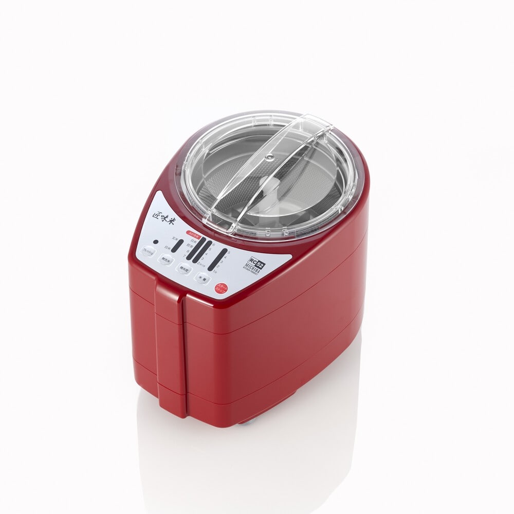 ・料理人・道場六三郎の食味評価により、精米状態を決定しプログラム化。 ・マイコン制御で「高速」「中速」「低速」3段階に精米スピードを自動減速することで、精米時の余分な摩擦を軽減し、お米の「温度上昇」「割れ」を抑えます。 ・うるち米を10種類のお米(みがき米/白米/胚芽米/8分/7分/6分/5分/4分/3分/2分づき米)に精米します。 ・「みがき米」機能は、白米をさらにみがき上げることで、表面の糠層を取り去り、おいしく頂けるモート?。 ・玄米・白米からそれぞれ「無洗米」に仕上げます。 ・「フレッシュ」モート?では、古くなったお米の酸化した部分を取り除き、本来の白米の香り・味を蘇らせます。 ・前回使用時の設定を記憶するメモリ機能付。 ・ぬかボックス、精米かごなどは取り外しが簡単で、お手入れも楽々。 ・1~5合用 ・カラー:レッド ・付属:計量カップ