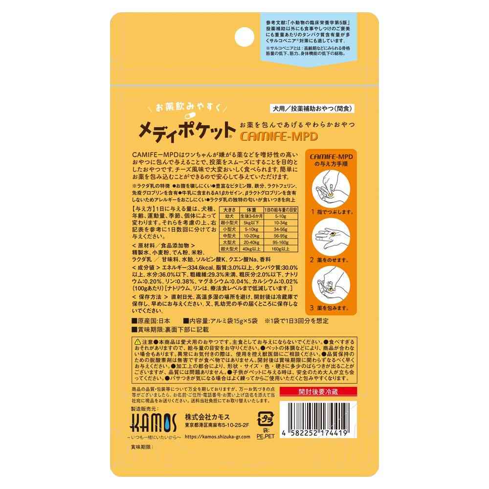 - > カモス メディポケット 犬用 投薬補助 15g×5袋