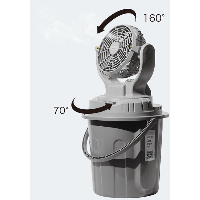 ●バケツの汲み上げと水道直結の2種類の給水方法です。●バッテリー稼働でポータブルに使用できます。●保管時はひっくり返してコンパクトに収納できます。●電源(V):100~240●消費電力(W)(50/60Hz):20(最大)●幅(mm):400●奥行(mm):370●高さ(mm):710●風量調節:3段階●ハネ径(cm):19●ミスト持続時間(h):4.5●首振り:70°●電圧:DC24V●容量:4.0Ah●稼働時間:約5.5~17時間●充電時間:約3時間●風量切替:3段階●自動首振り機能付●噴霧量(L/min):5.5(強)、4.9(弱)●水タンク容量(L):23●風量調節:3段階 質量5kg