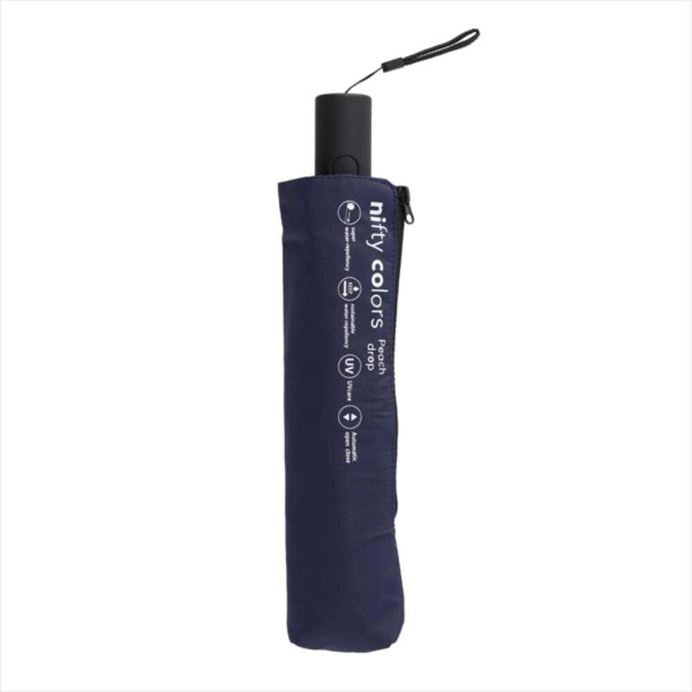 ハンドル部分のボタンを押すだけで自動で開閉してくれる親骨58cmの「Peach drop(ピーチドロップ)」超はっ水自動開閉折りたたみ傘です。 「Peach drop」は、水滴を弾く桃の皮(ピーチスキン)のように、生地の表面が微起毛になった雨が当たっても一瞬で水滴を弾く超はっ水素材です。 「超はっ水」とは一般的に「水滴が面に対しておおよそ150°前後の接触角で接する現象」と言われています。 「Peach drop」は接触角153°を測定し、生地の持つはっ水力で水滴が玉のような表面張力を保ちます。 加えて、はっ水性能の持続性が高いのも特徴です。 傘骨は特殊な構造により手を離した位置でシャフトの伸縮が止まり、少しづつ段階的に収納できるので安全にお使いいただけます。 ケースの脇にファスナーがついているので収納しやすく、持ち運びに便利です。 紫外線遮蔽率:93.1%になります。