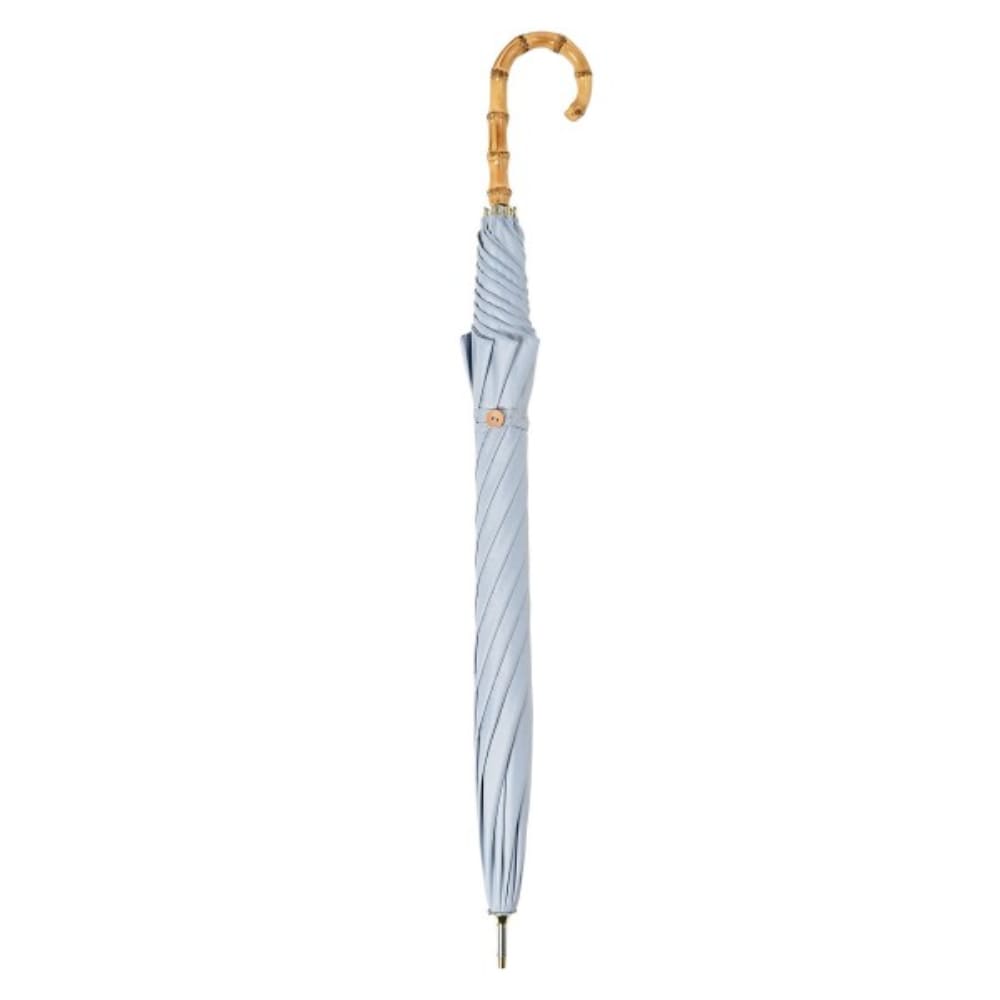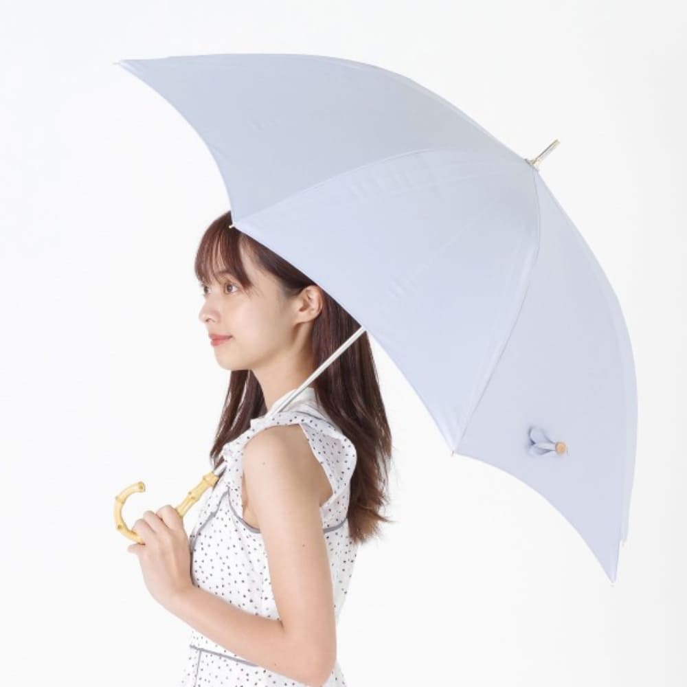 ポリエステル生地の裏側にポリウレタン加工を施した一級遮光生地の親骨58cm大きめサイズ遮光晴雨兼用日傘です。 紫外線遮蔽率100%、UPF50+、遮光率100%、遮熱性効果で強い日差しや暑さをしっかり遮ります。 雨の日にも安心なはっ水・防水効果もあり、耐水圧の検査も20,000mm以上を計測していますので、晴雨兼用日傘としてオールシーズンお使いいただけます。 開いた時に丸く綺麗に見える8本骨の長傘は使う人を美しく引き立てます。 親骨58cmサイズは、一般的な日傘の長傘の親骨50cmサイズに比べて開いた時により広い面をカバーできます。 大きめな日傘をお求めのお客様にぴったりなサイズ感です。 親骨にはしなやかで丈夫なグラスファイバーを使用していますので、軽く丈夫で錆びにくい傘になりました。指や爪をはさみにくい「安全ろくろ(ストッパー)」を使用しているので、ボタン部分を押して開閉でき安心してお使いいただけます。 長傘の場合、傘を開閉する際も折りたたみタイプより、簡単に開閉出来るので便利です。