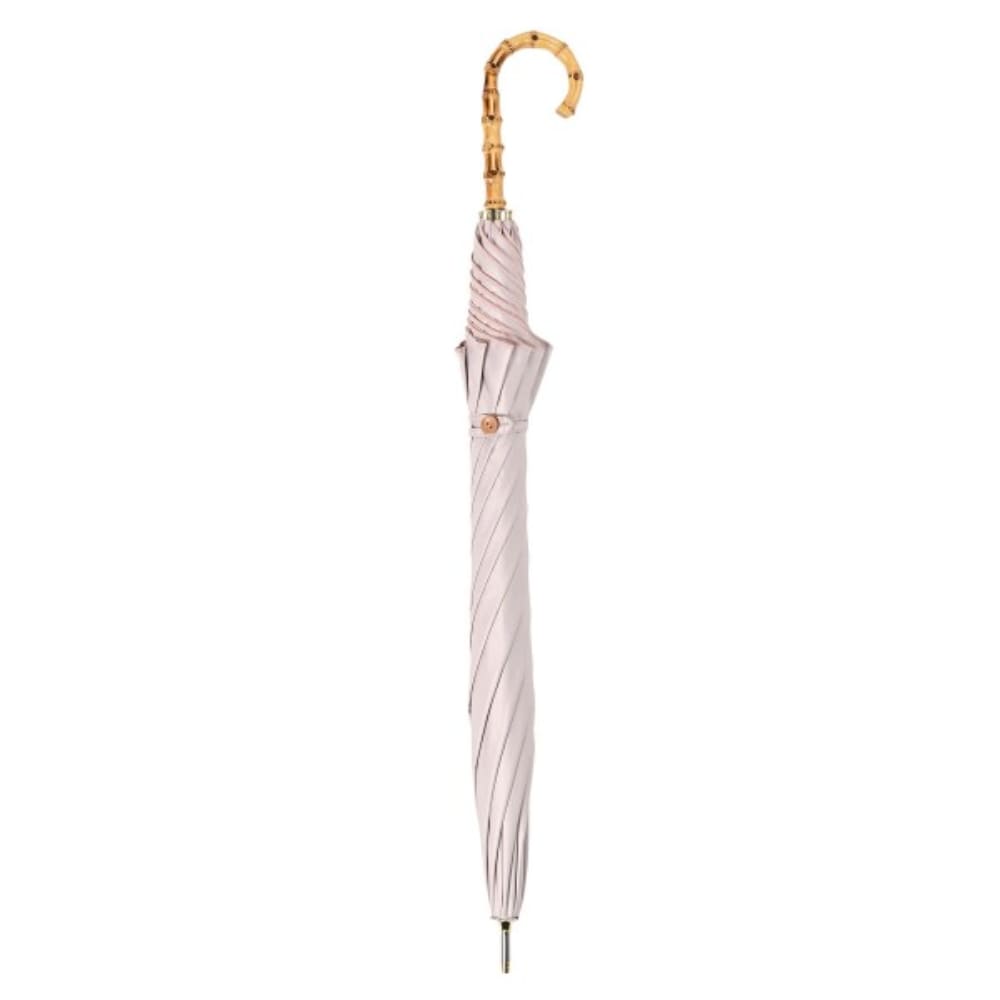 ポリエステル生地の裏側にポリウレタン加工を施した一級遮光生地の親骨58cm大きめサイズ遮光晴雨兼用日傘です。 紫外線遮蔽率100%、UPF50+、遮光率100%、遮熱性効果で強い日差しや暑さをしっかり遮ります。 雨の日にも安心なはっ水・防水効果もあり、耐水圧の検査も20,000mm以上を計測していますので、晴雨兼用日傘としてオールシーズンお使いいただけます。 開いた時に丸く綺麗に見える8本骨の長傘は使う人を美しく引き立てます。 親骨58cmサイズは、一般的な日傘の長傘の親骨50cmサイズに比べて開いた時により広い面をカバーできます。 大きめな日傘をお求めのお客様にぴったりなサイズ感です。 親骨にはしなやかで丈夫なグラスファイバーを使用していますので、軽く丈夫で錆びにくい傘になりました。指や爪をはさみにくい「安全ろくろ(ストッパー)」を使用しているので、ボタン部分を押して開閉でき安心してお使いいただけます。 長傘の場合、傘を開閉する際も折りたたみタイプより、簡単に開閉出来るので便利です。