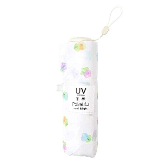 軽くて小さい、ポケットサイズのかわいい『Pokellaポケラ』は高さ16cm、重さ約140gの小さいサイズ感に紫外線遮蔽率98%以上、耐水圧4,000mm以上の機能を兼ね備えた晴雨兼用折りたたみ傘です。手元部分をカチッと傘骨に押し込むとしっかりロックされ中棒が伸びてくるのを防ぎます。指や爪をはさみにくい「安全ろくろ(ストッパー)」を使用しているので、ボタン部分を押して開閉でき安心してお使いいただけます。小さめのバッグやポケットにも入るコンパクトさが魅力です。紫外線遮蔽率:99.5%