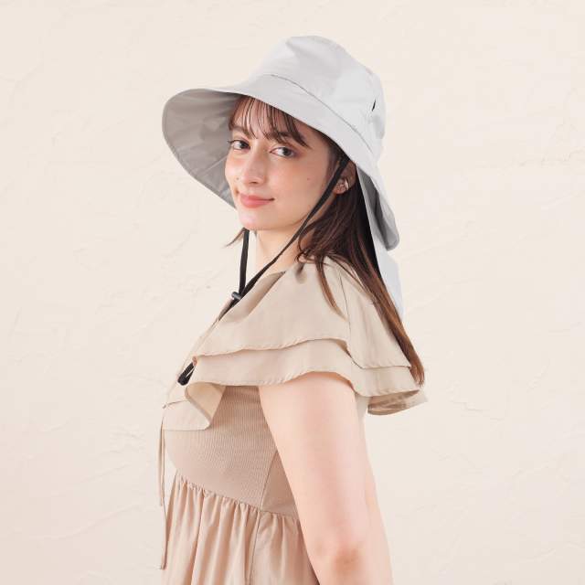 直射日光の下でも、水やエネルギーを消費せずに外気温よりも涼しく保つことができる【Radi-Cool】を採用。日傘の表面から受ける熱は、【放射冷却(放熱力)】と【遮熱率60%以上】の温度上昇抑制力によって抑制されます。遮光率100%、UVカット率100%で、眩しい日光や紫外線を遮断します。肌の奥深くまでダメージを与えると言われる近赤外線を100%遮断します。撥水防水機能で水圧18,000mm以上なので、雨の日でも使用できます。取り外し可能な日よけが付いているので、首の日焼けや暑さから守ることができます。マジックテープで簡単に着脱できるので、2通りの使い方ができます。【サイズ調整可能】内側のベルクロテープで頭囲を調節できます。取り外し可能なストラップ(あご紐)が付いているので、風で飛ばされる心配がありません。ストッパーで長さを調節できるので、お好みの位置で使用できます。強く引っ張りすぎると外れる安全機能が付いています。サイドクラウンの通気孔と内側のメッシュにより、蒸気や汗で生地がべたつくリスクを軽減します。つばの周りに柔らかいワイヤーが入っているので、お好みの形に調整できます。