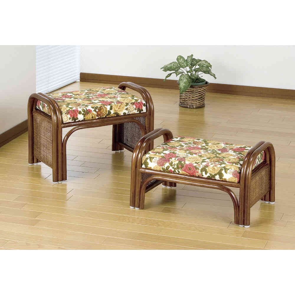 和室や玄関でなにかと便利! ●正座しても足がしびれにくく、立ち上がりやすい丈夫な手すり付き。 ●オットマンにも便利。 ●お買い得2脚組。 ●立ち座りが楽なハイタイプ。 ※手作業で生産される籐製品は表記寸法と若干の誤差がある場合がございます。
