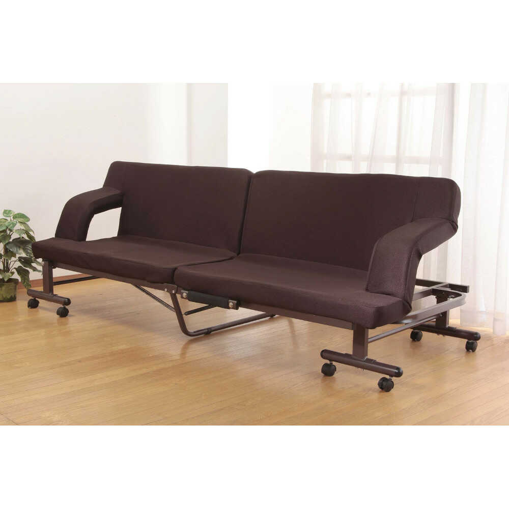 組立不要!!届いたその日から使える完成品の折りたたみソファベッド。 ●様々な生活スタイルに合わせて、形を変える多機能ソファベッド。ベッドにもソファにもなるのでテレビを見たり、読書をしたりいろいろな使い方ができます。 ●一般のベッドのような、面倒な組立が要らないので楽々!届いたらすぐに使えます。 ●折りたたんでコンパクトに収納。キャスター付きで移動ラクラク。 ●14段階リクライニング ●ソファ使用時は肘掛け付きで便利。 ●張り地には熱や湿気がこもりにくく、肌ざわりの良いメッシュ素材を採用。 ●移動がラクなストッパー付きキャスター。 ●マットサイズ:約幅90×長さ200cm ●組立不要完成品