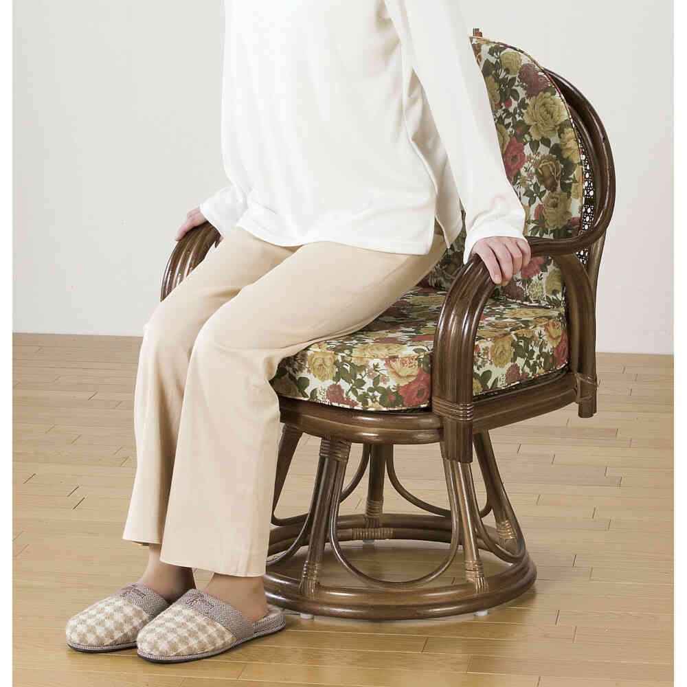 ラタン 回転式 座椅子 和風 和室 シニア 高齢者 回転 チェア 肘付き アームレスト付き 完成品