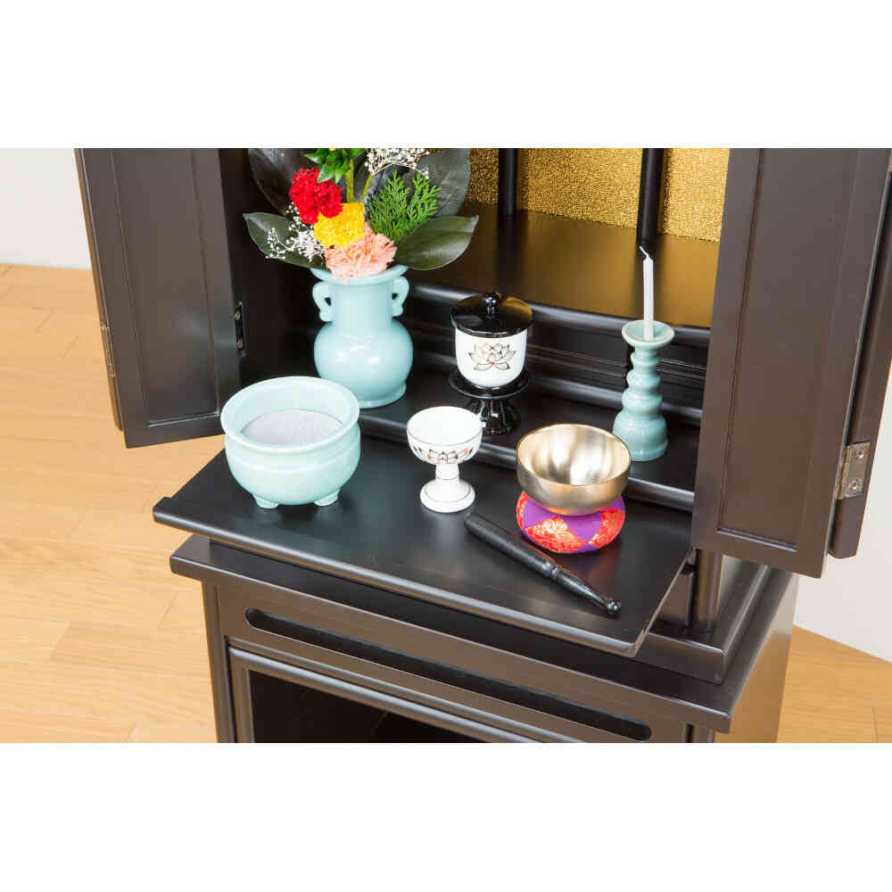 仏壇 コンパクト 省スペース 上置型 スライド棚付き 引き出し付き 木製 完成品