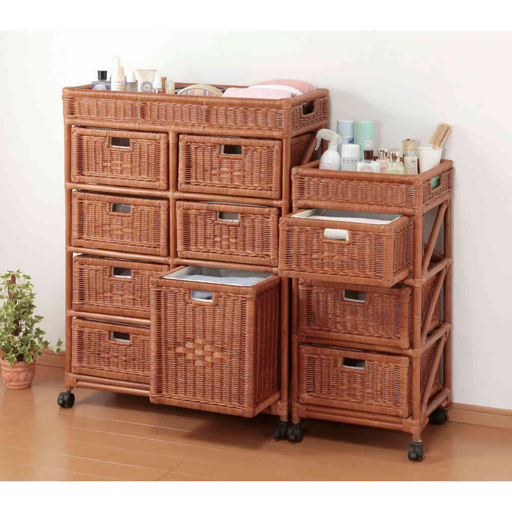 バスタオルやパジャマ、家族の下着、化粧品などきれいにすっきり収納。 ●天然素材でしっかり仕上げたバスまわりの通気性良い定番品です。 ●衣類を傷つけない内布付きも魅力な設計。 ●キャスター付き ●一部組立式 ※キャスターのみ取り付け ※手作業で生産される籐製品は表記寸法と若干の誤差がある場合がございます。