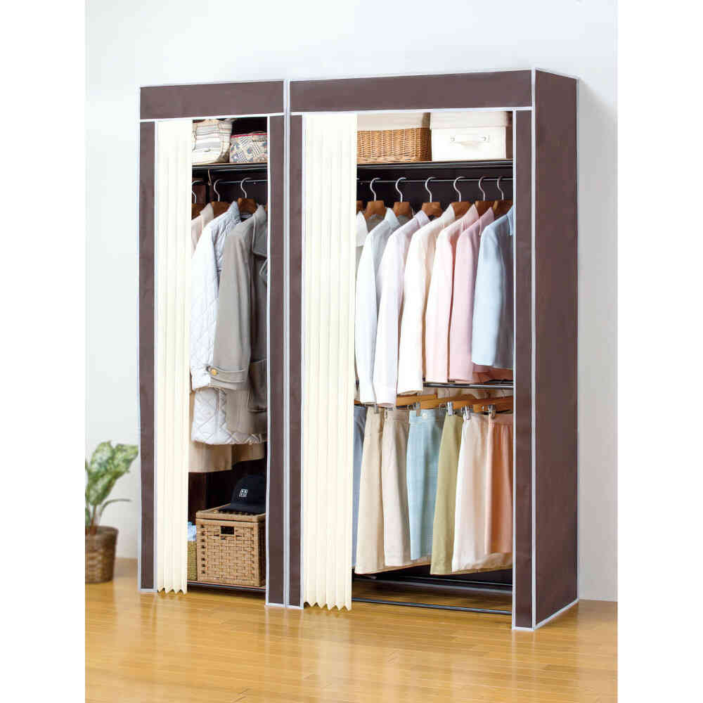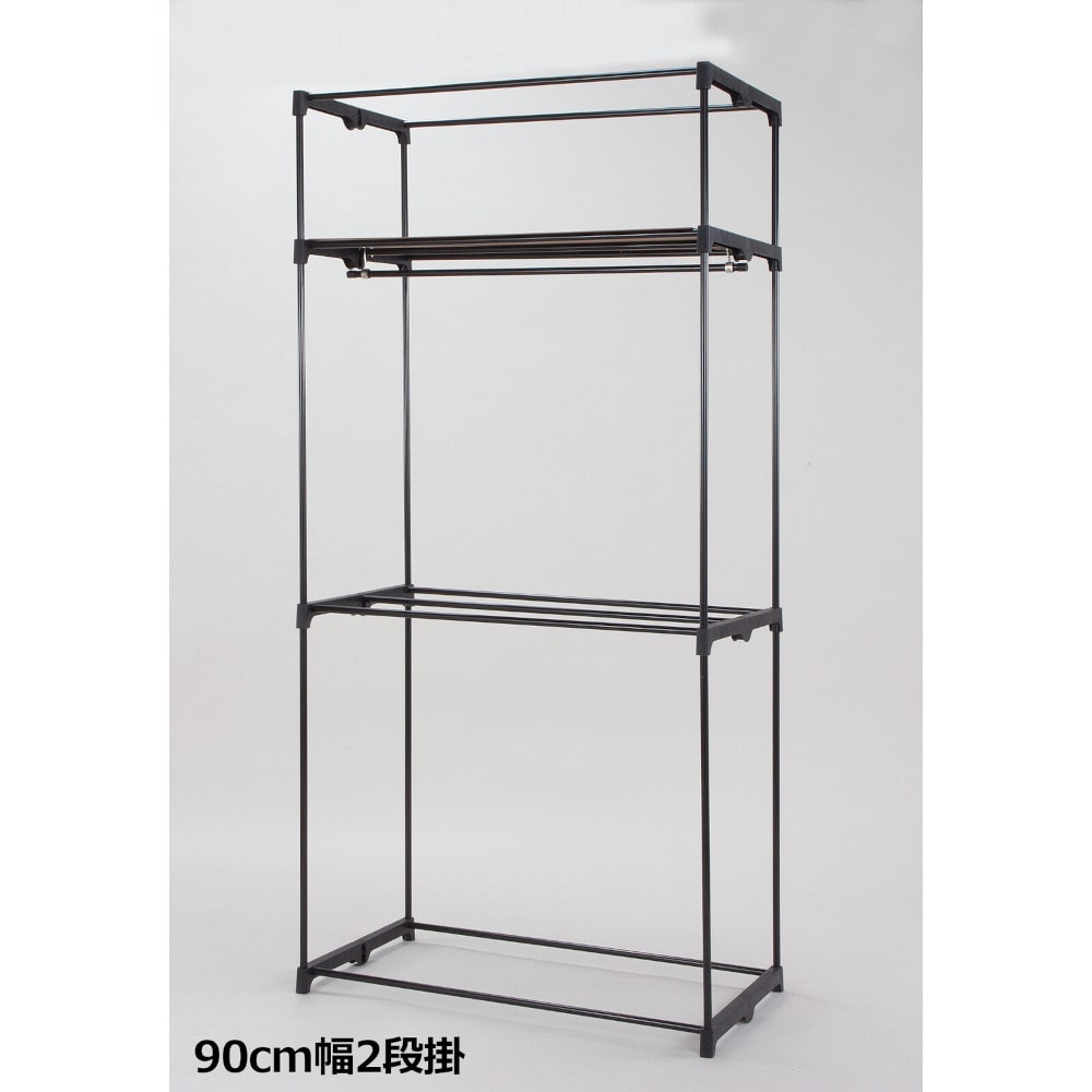 カバー付き、カーテン付きで衣類をホコリから守ります。 ●ドライバー不要で簡単組み立て! ●上下棚付き、2段掛の2つの仕様と60cm幅・90cm幅の2サイズから選べるカバー付きハンガー。 ●セパレート型なので、60cm幅+60cm幅で120cm幅、60cm幅+90cm幅で150cm幅とお部屋のサイズに合わせて組み合わせが自由です。 ●棚付きタイプは、バッグや小物の収納に便利です。2段掛タイプは、ジャケットやスカートなど大量に収納できます。 ●お客様組立式